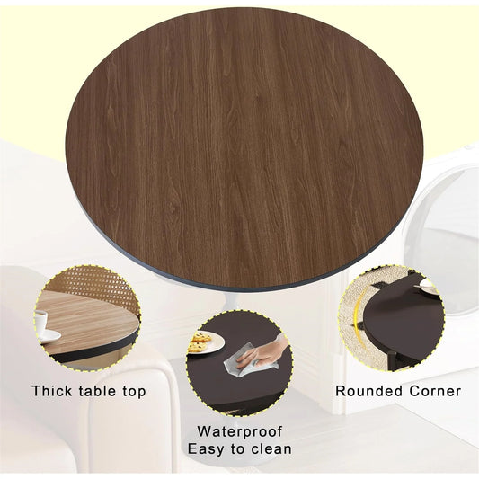 20.08" Round Table Top Wood - Walnut & Black Double Sided, Outdoor Dining Replacement for Restaurants, Cafes, Bars