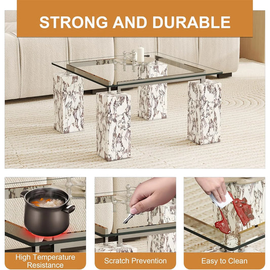 36x36 Inch Square Tempered Glass Table Top, 0.23 Inch Thick Clear Rectangle Tabletop with 6 Anti-Slip Rubber Rings, Replacement for Dining, Kitchen, Patio & Coffee Table