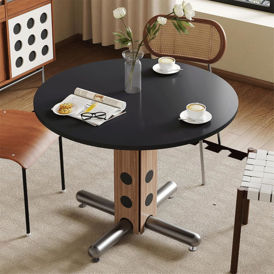 35.43" Round Table Top Wood - Walnut & Black Double Sided, Outdoor Dining Replacement for Restaurants, Cafes, Bars