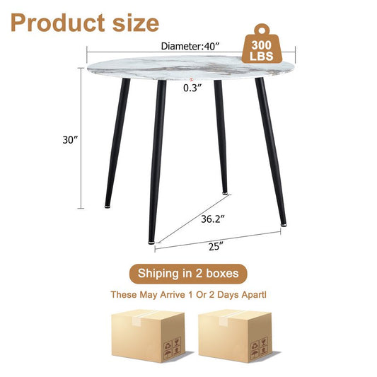 40 Inch Round Marble Dining Table for 4, Sudica Modern White Marble Table with Black Legs Compact Kitchen Table for Living Room