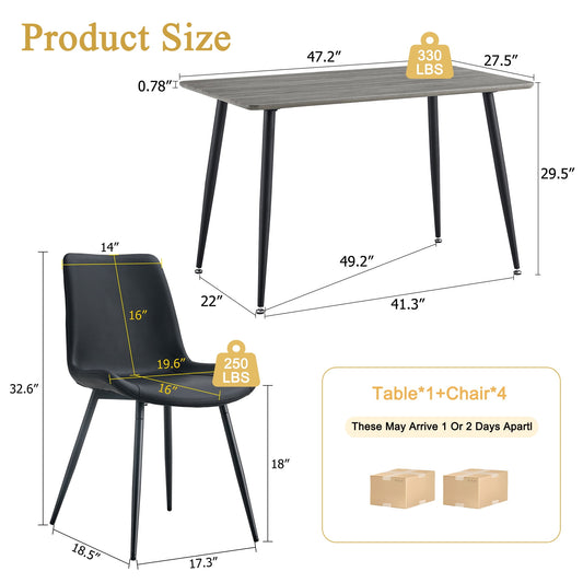 47.2" Compact Dining Table Set, Sudica Modern Wooden Kitchen Table with Upholstered Faux Leather Dining Chairs, Black