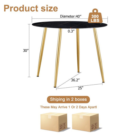 40 Inch Round Marble Dining Table for 4, Sudica Black Marble Table with Gold Legs Compact Kitchen Table for Living Room