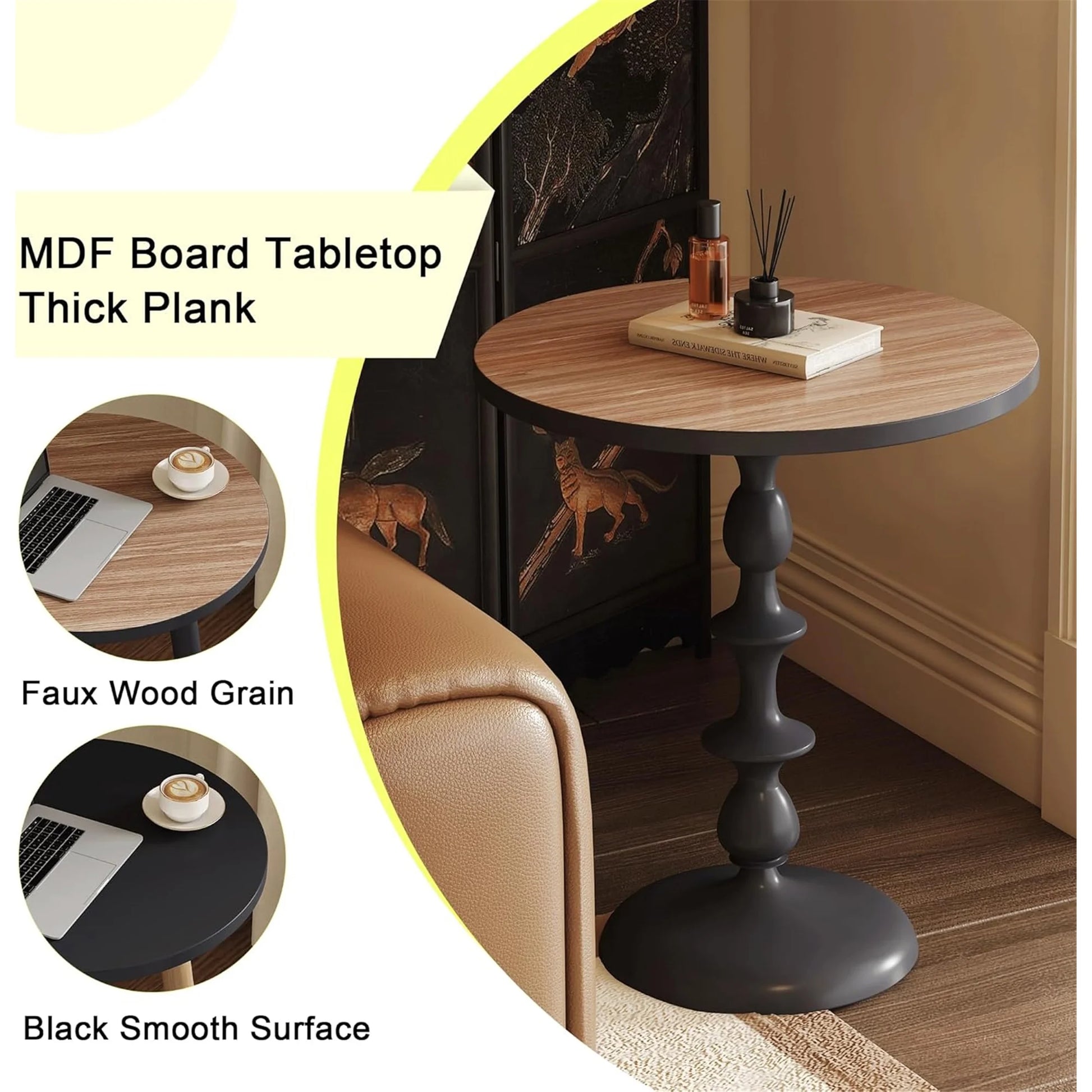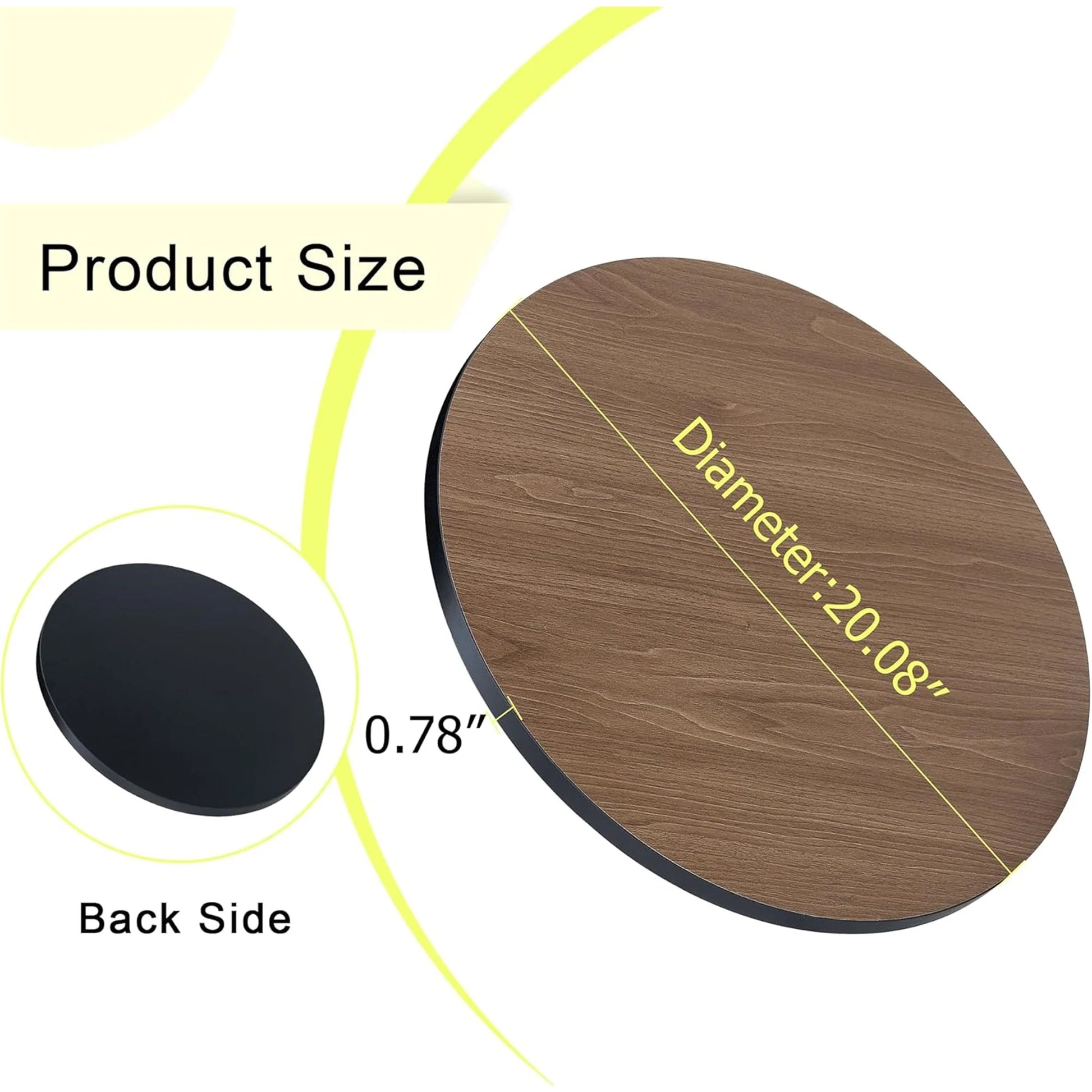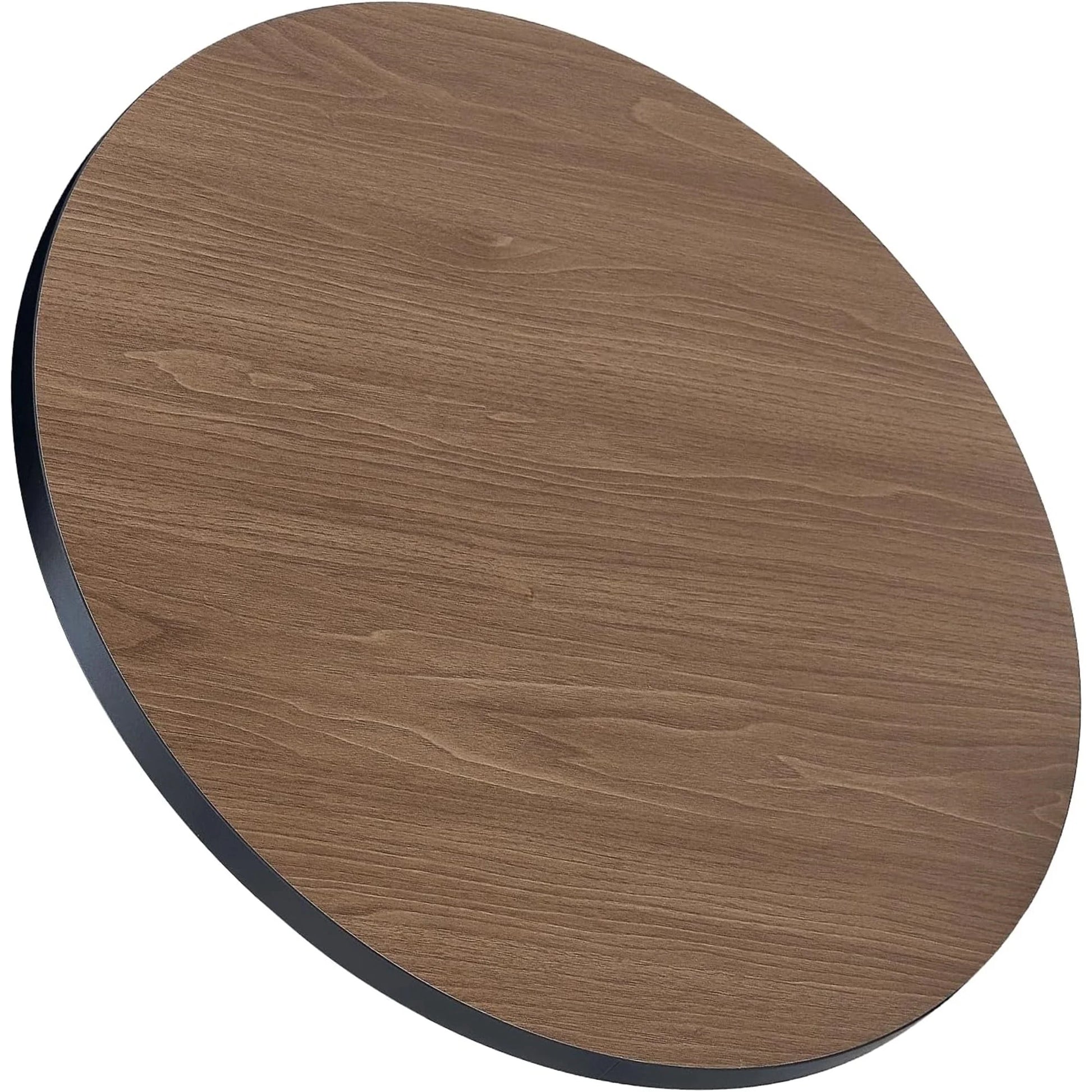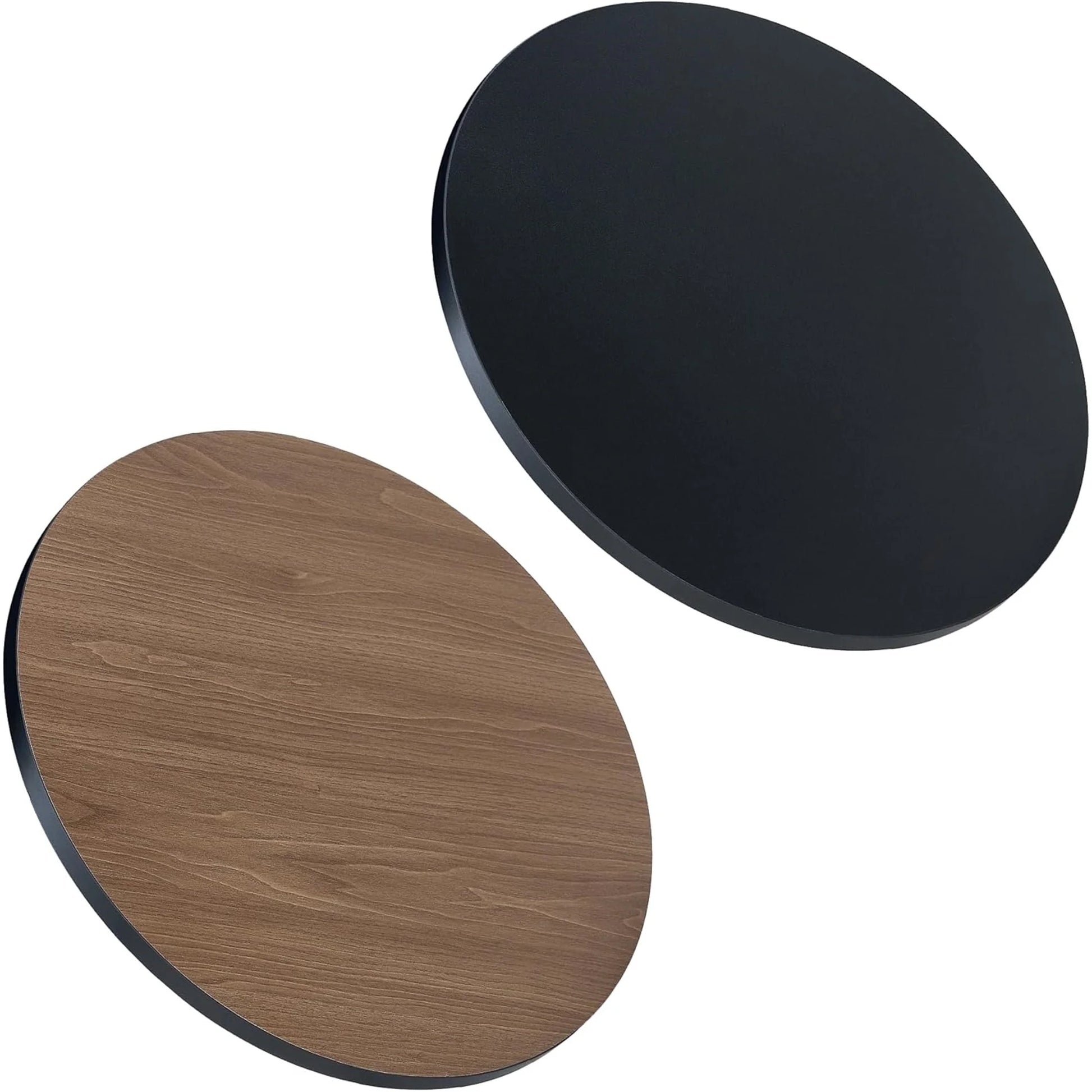 20.08" Round Table Top Wood - Walnut & Black Double Sided, Outdoor Dining Replacement for Restaurants, Cafes, Bars