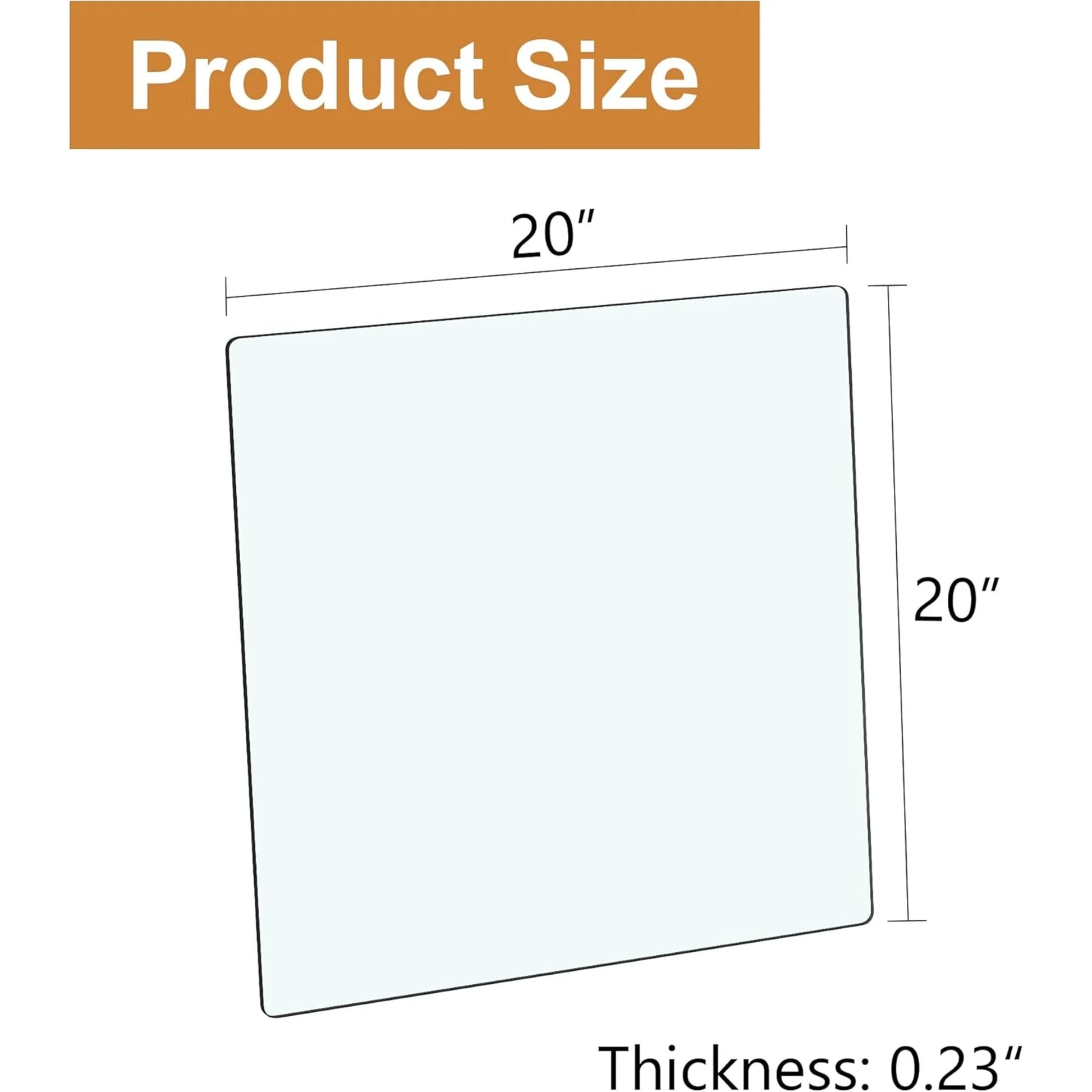 20x20 Inch Square Tempered Glass Table Top, 0.23 Inch Thick Clear Rectangle Tabletop with 6 Anti-Slip Rubber Rings, Replacement for Dining, Kitchen, Patio & Coffee Table