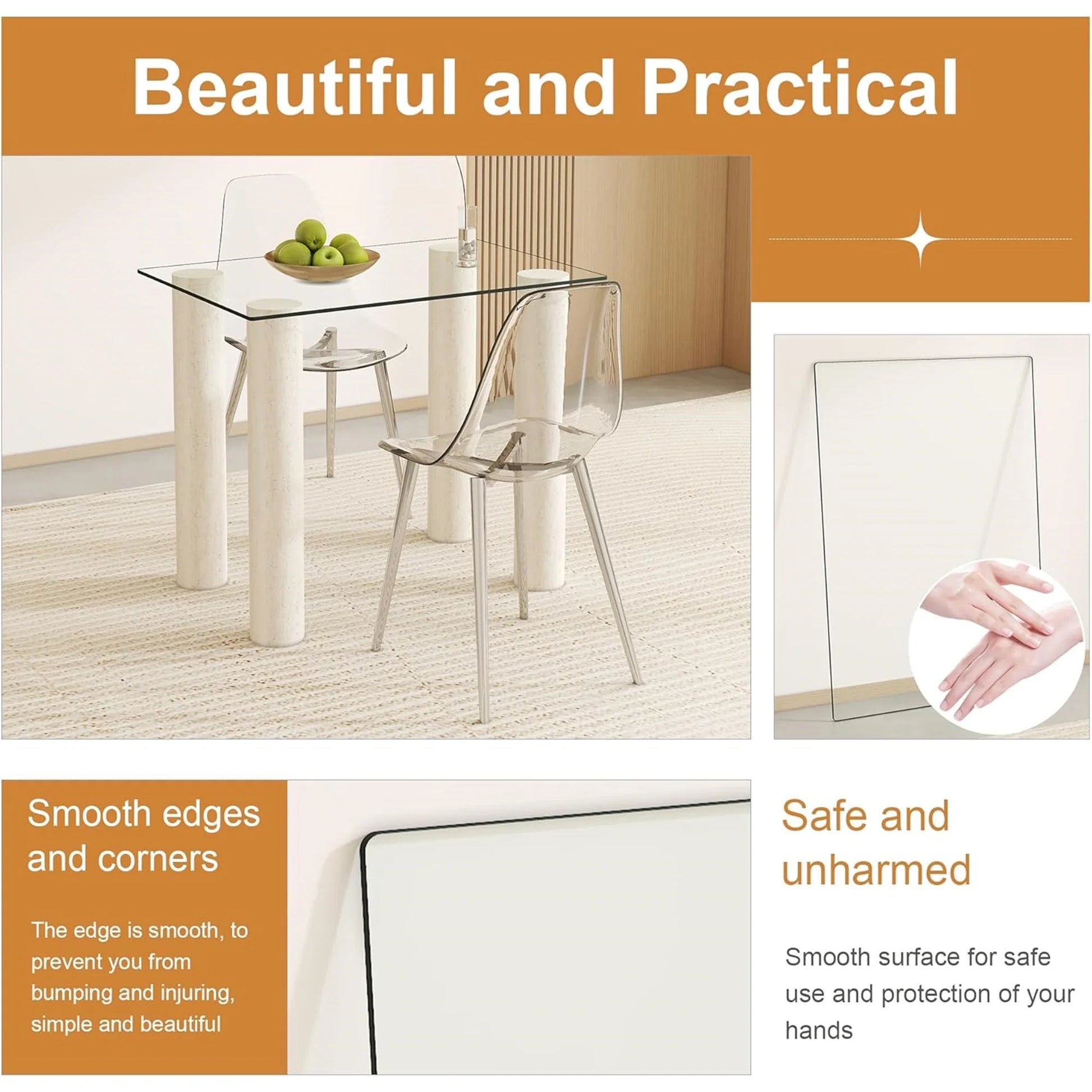 24x36 Inch Rectangle Tempered Glass Table Top, 0.31 Inch Thick Clear Square Tabletop with 6 Anti-Slip Rubber Rings, Replacement for Dining, Kitchen, Patio & Coffee Table