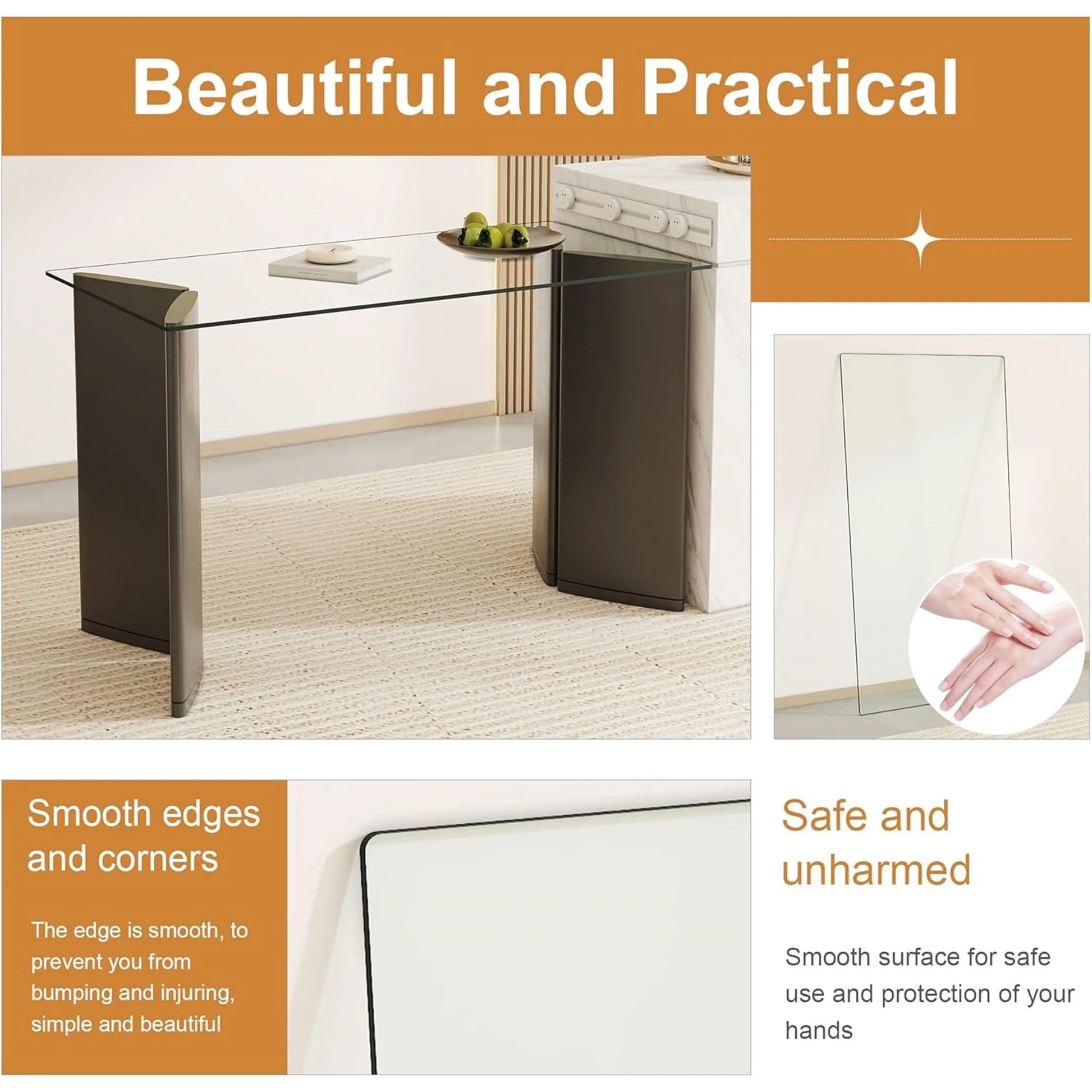 【High Quality】Sturdy tempered glass table top. Transparent tempered glass surface bears visible gravity, high-quality raw materials and strict manufacturing process to produce high-quality and is resistant to high temperature.
