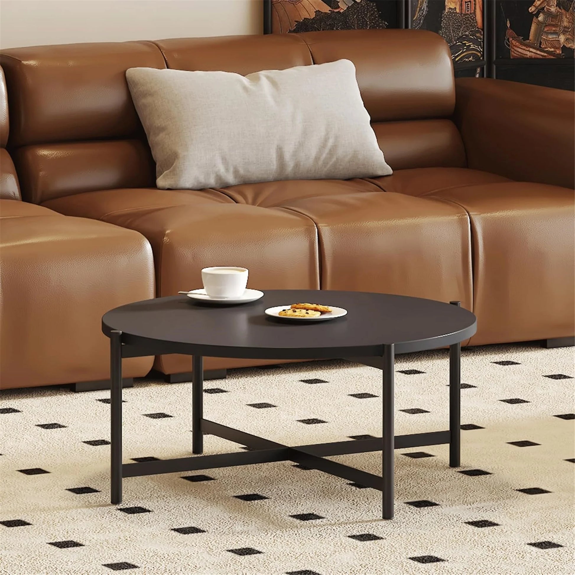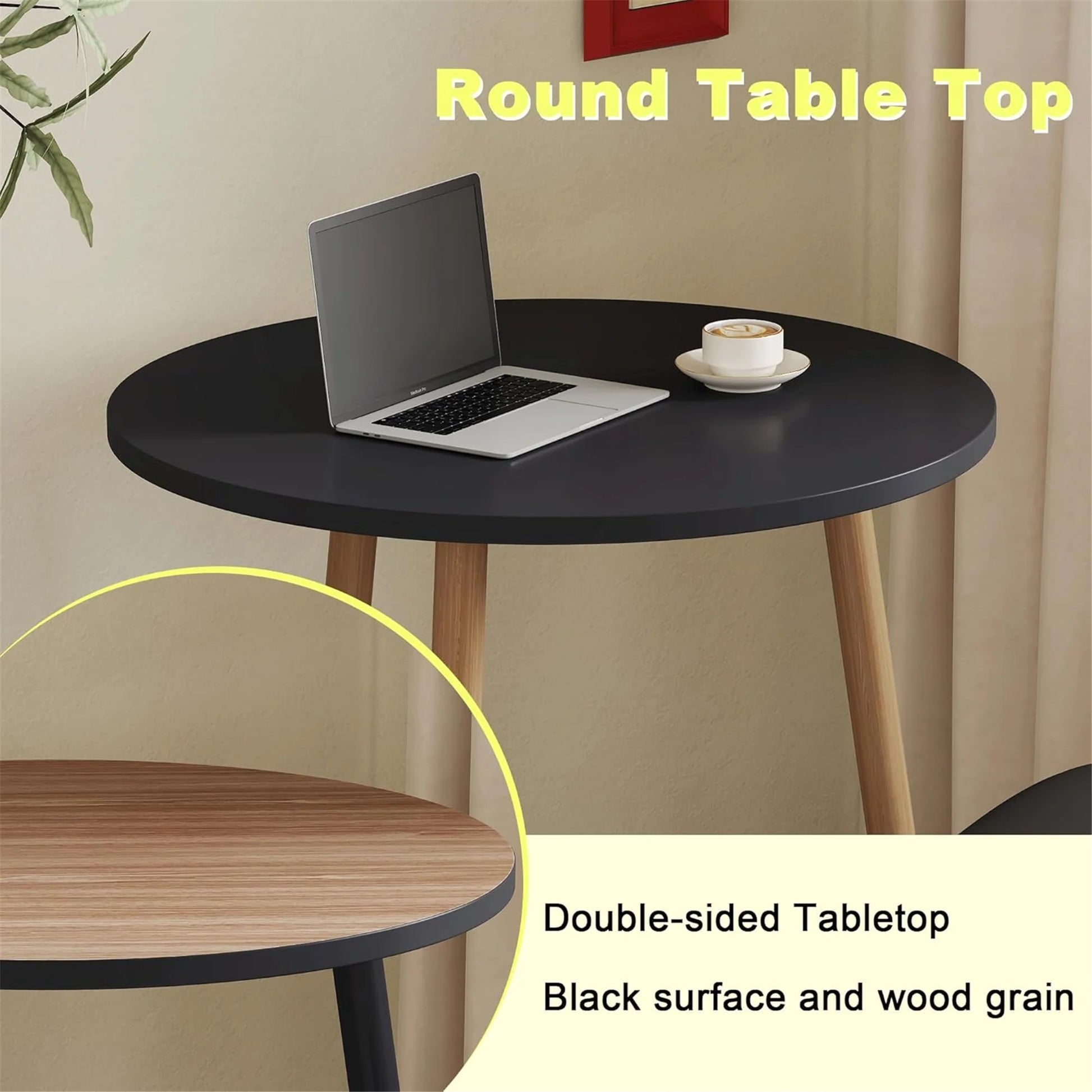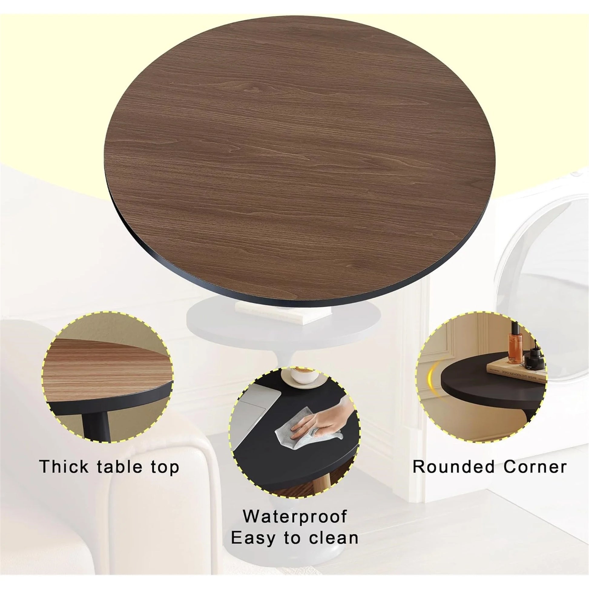 27.95" Round Table Top Wood - Walnut & Black Double Sided, Outdoor Dining Replacement for Restaurants, Cafes, Bars