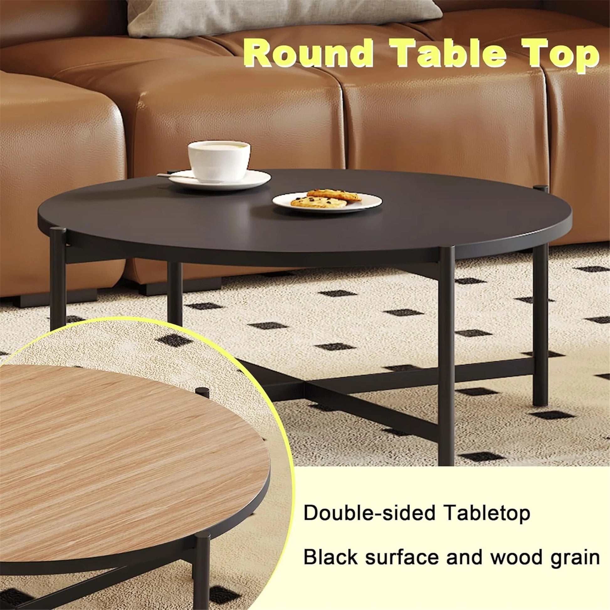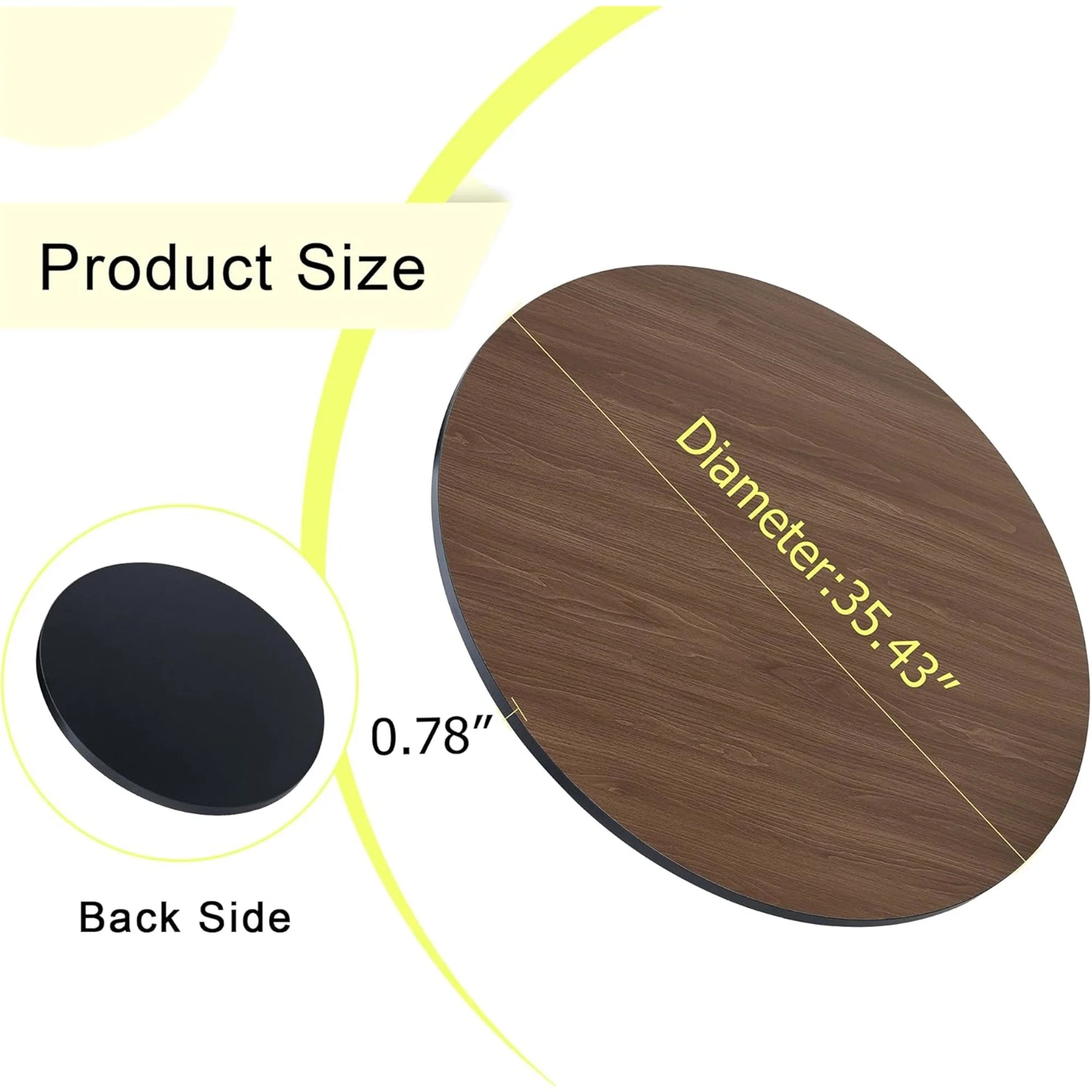 35.43" Round Table Top Wood - Walnut & Black Double Sided, Outdoor Dining Replacement for Restaurants, Cafes, Bars