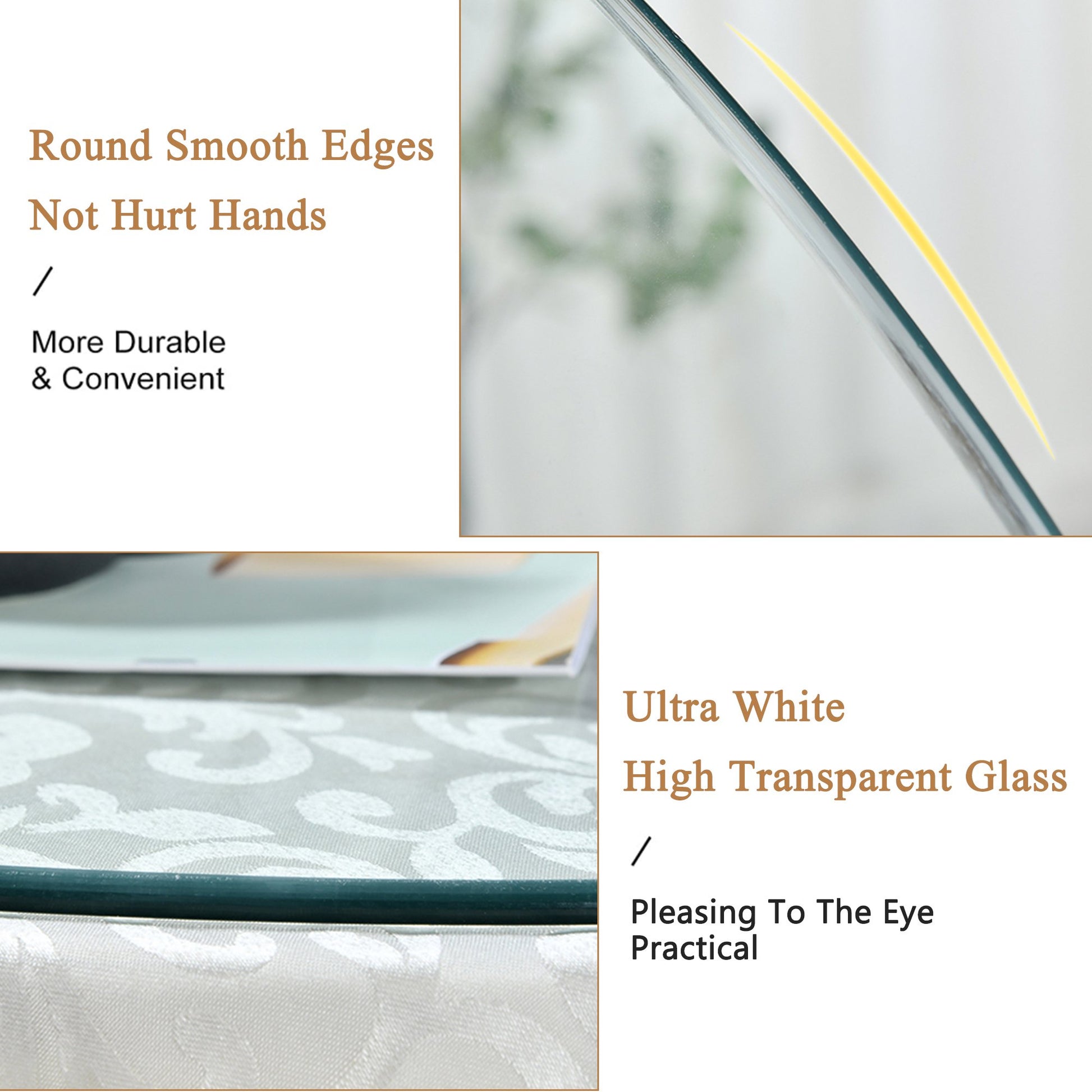 36 Inch Round Glass Table Top 0.28 inch Thick Clear Tempered Glass Table Top