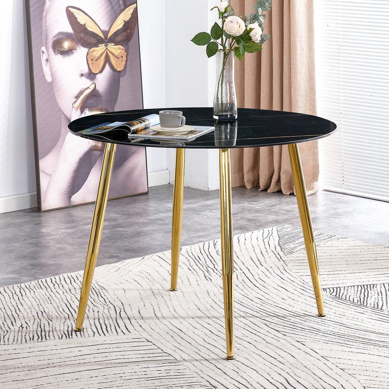 Elevate your dining space with our 40-inch round table. Featuring a stylish and compact design with metal legs available in silver or gold, and your choice of a glass or marble table top. Perfect for adding a touch of elegance to any room.