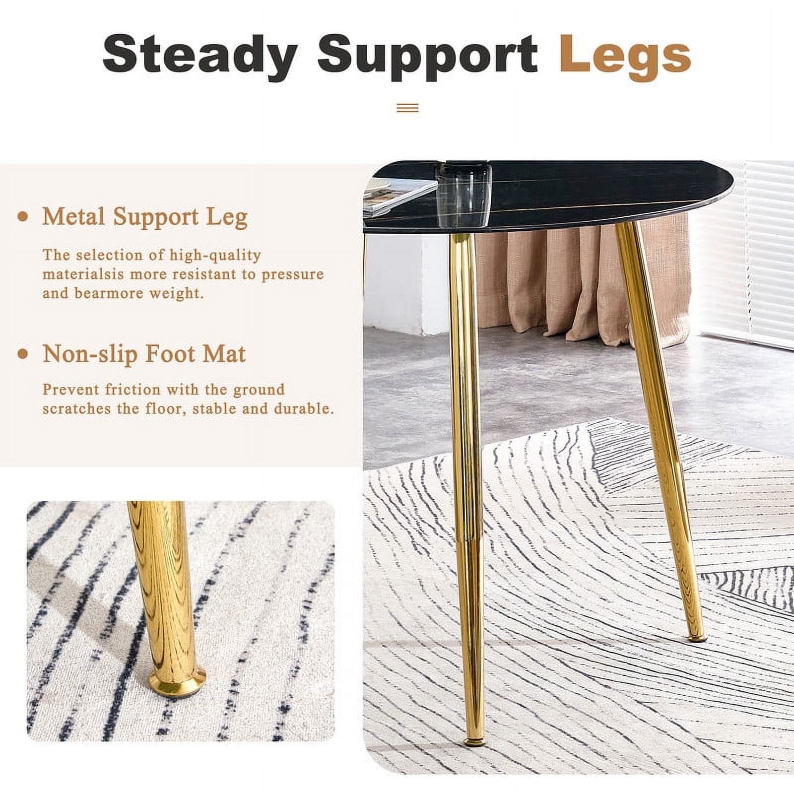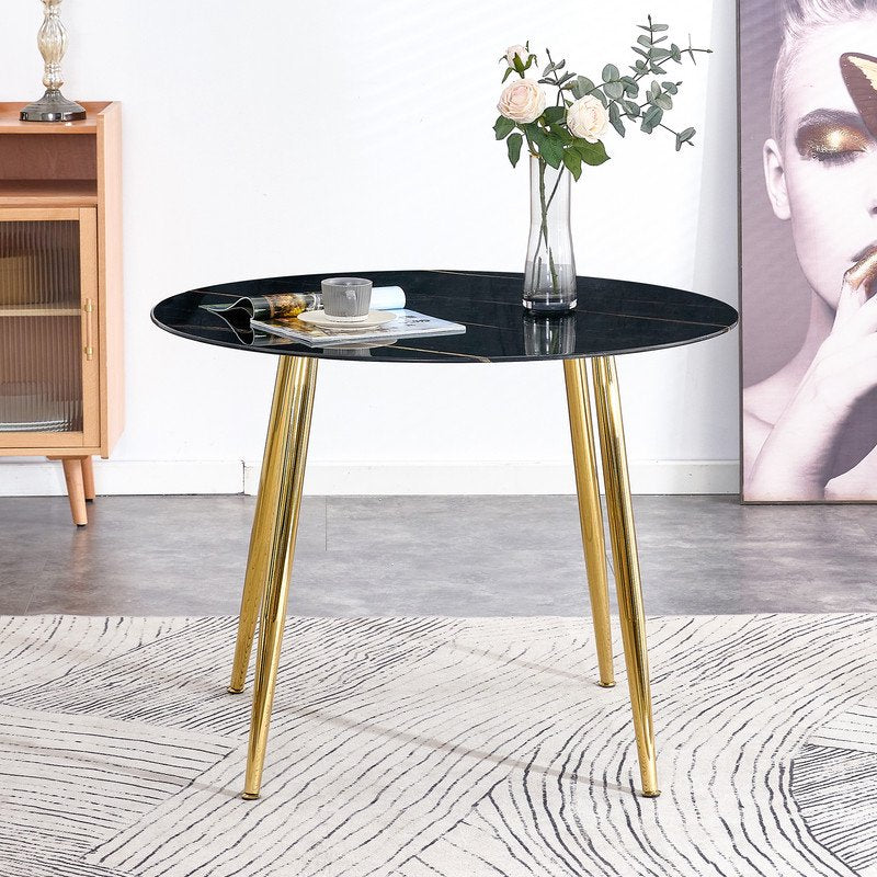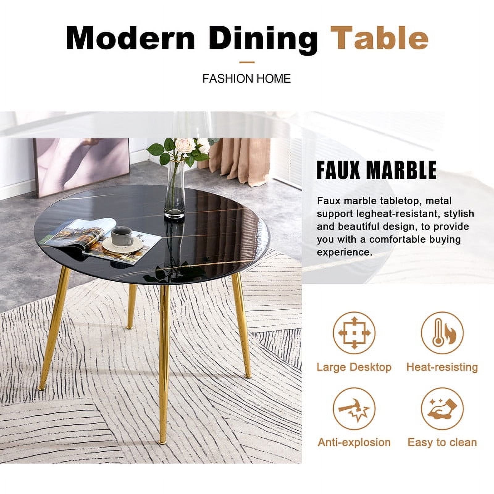 40 Inch Round Marble Dining Table for 4, Sudica Black Marble Table with Gold Legs Compact Kitchen Table for Living Room