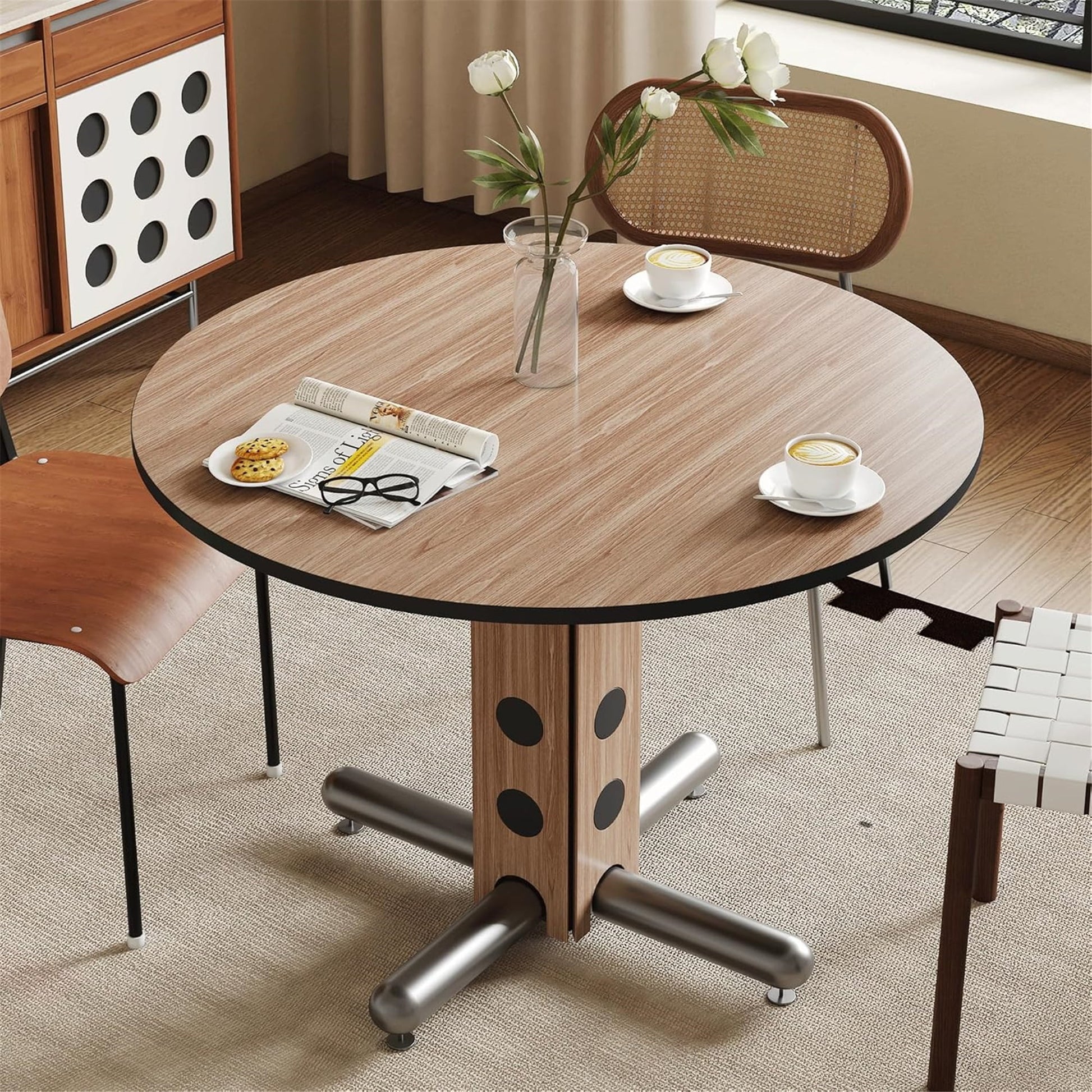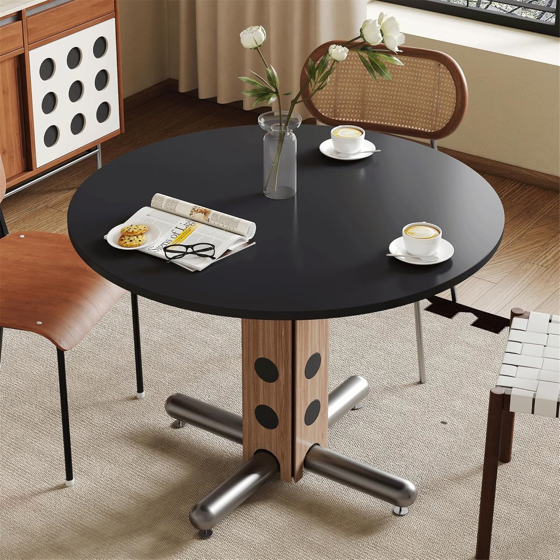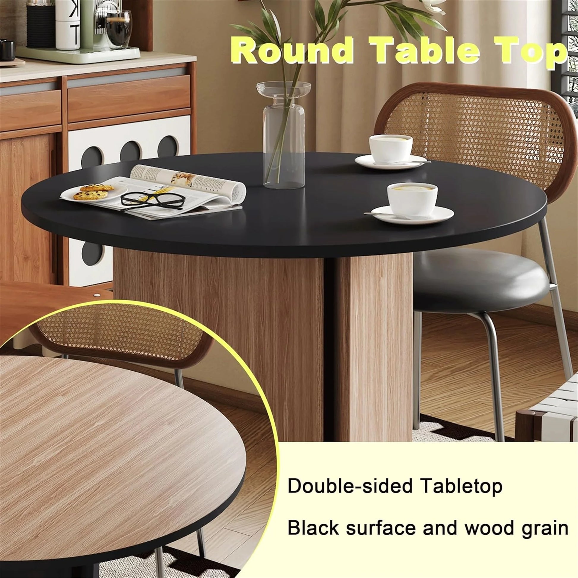 42.13" Round Table Top Wood - Walnut & Black Double Sided, Outdoor Dining Replacement for Restaurants, Cafes, Bars