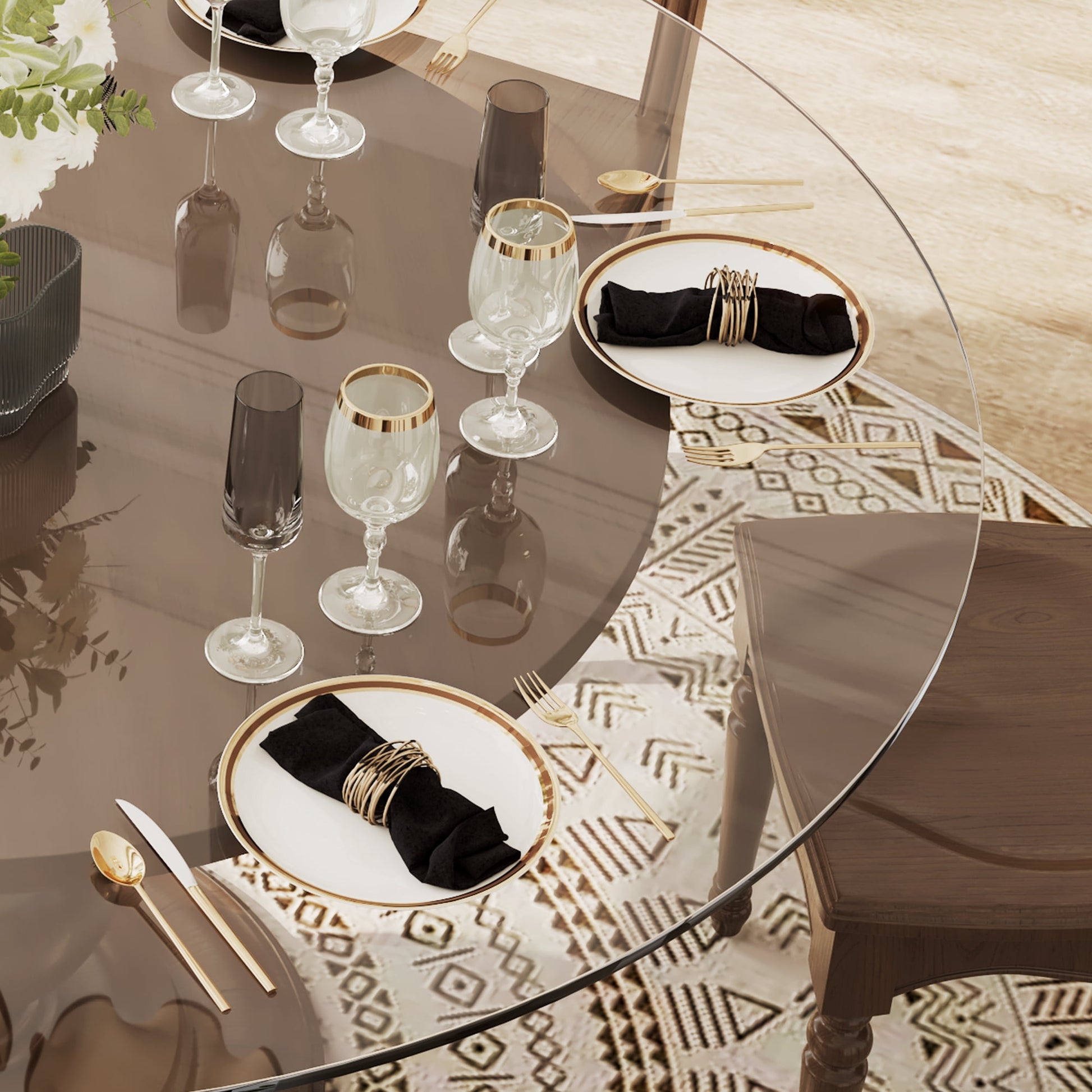 - ¡¾Ogee Edge Polish¡¿-This glass table top features an ogee edge polish, adding a touch of elegance and sophistication to your space. The smooth and sleek edges not only look great but also prevent any potential injuries from sharp edges.