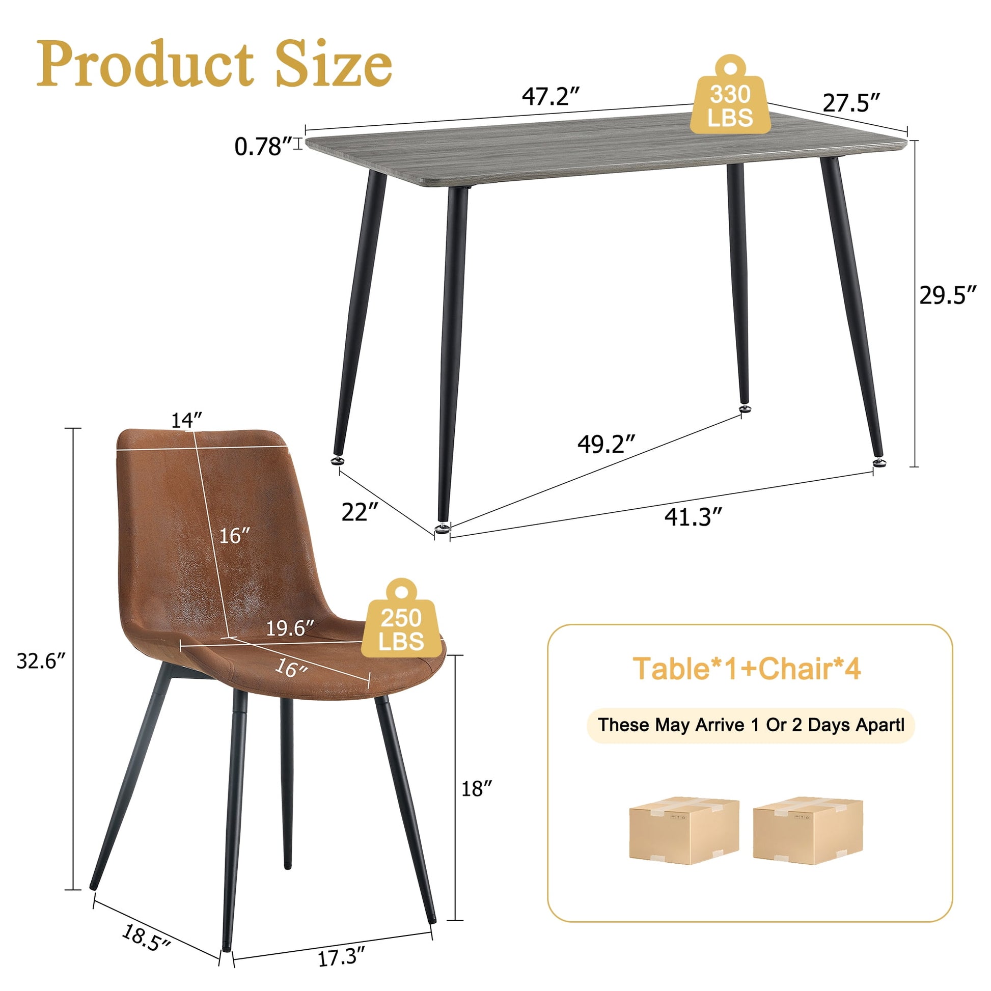 47.2" Compact Dining Table Set, Sudica Modern Wooden Kitchen Table with Upholstered Faux Leather Dining Chairs, Brown