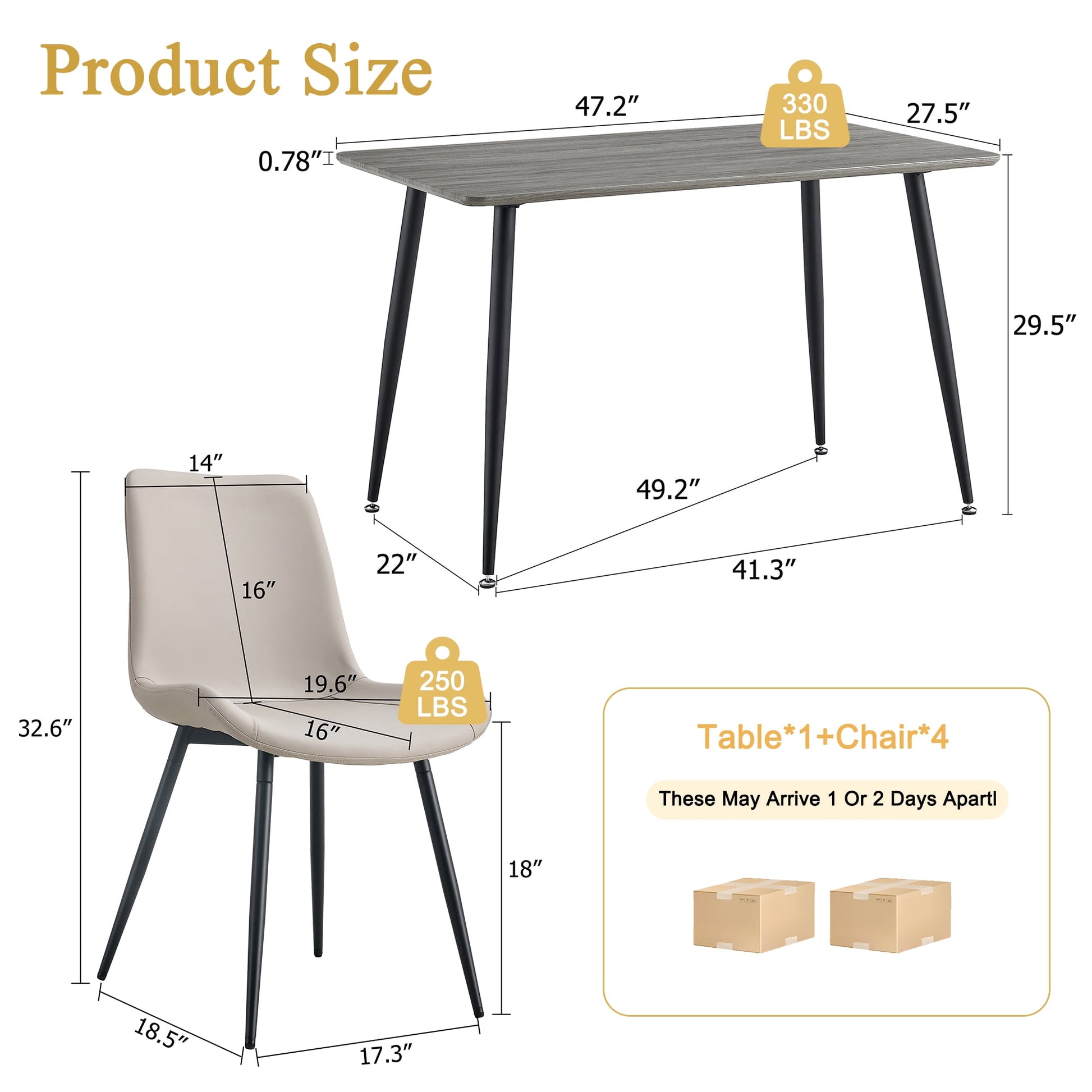 47.2" Compact Dining Table Set, Sudica Modern Wooden Kitchen Table with Upholstered Faux Leather Dining Chairs, Gray