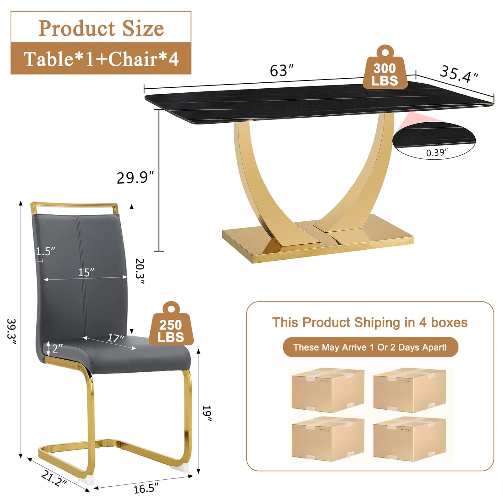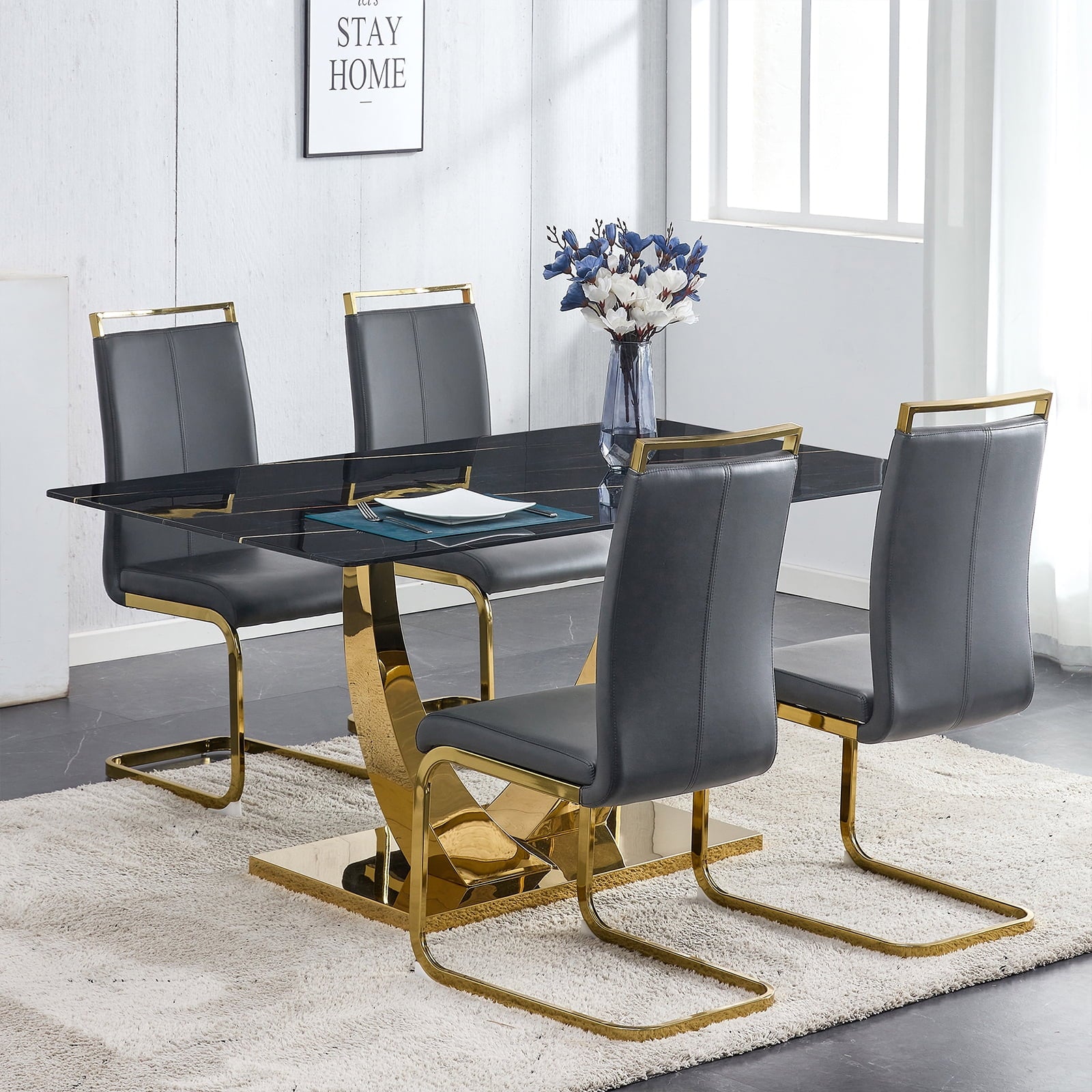 - ¡¾Gold Polished Pedestal Base Dining Table¡¿In contrast to standard iron legs on the market, the legs and frame of our table are polished to a mirror-like finish. This unique treatment imbues the dining table set with a brilliant and captivating presence in any room.