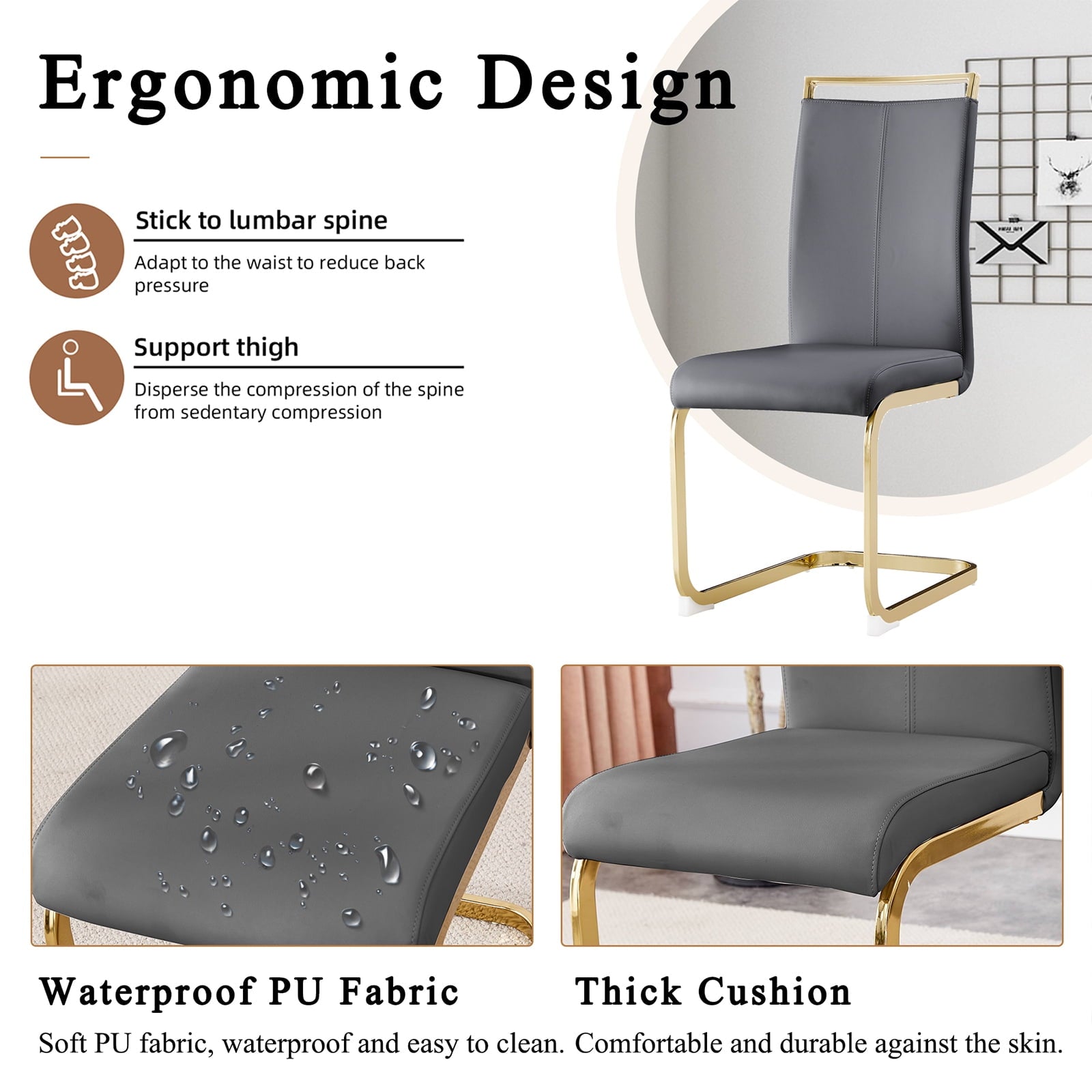 - ¡¾Comfortable Upholstered PU Leather Dining Chair Seat¡¿The generously sized seat and high backrest of our dining chairs provide excellent back support, enabling you to sit in comfort for extended periods of time while enjoying meals at the table.