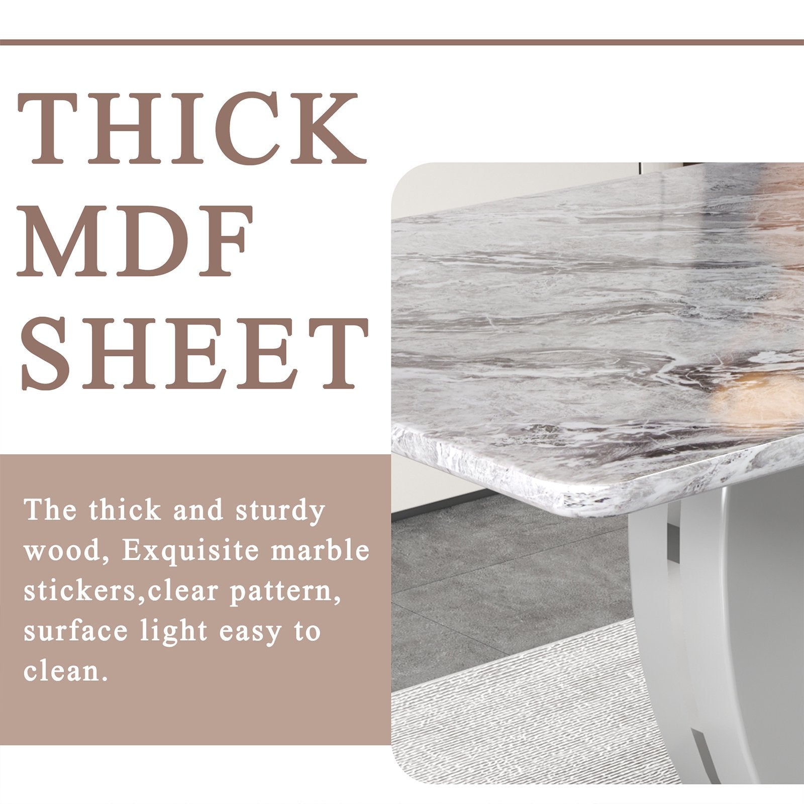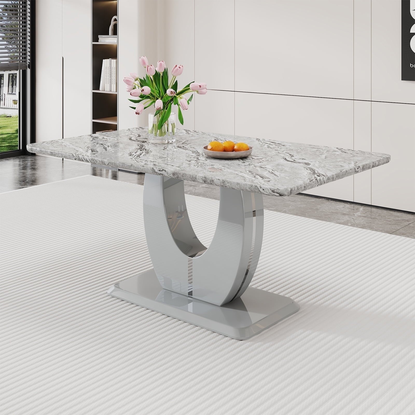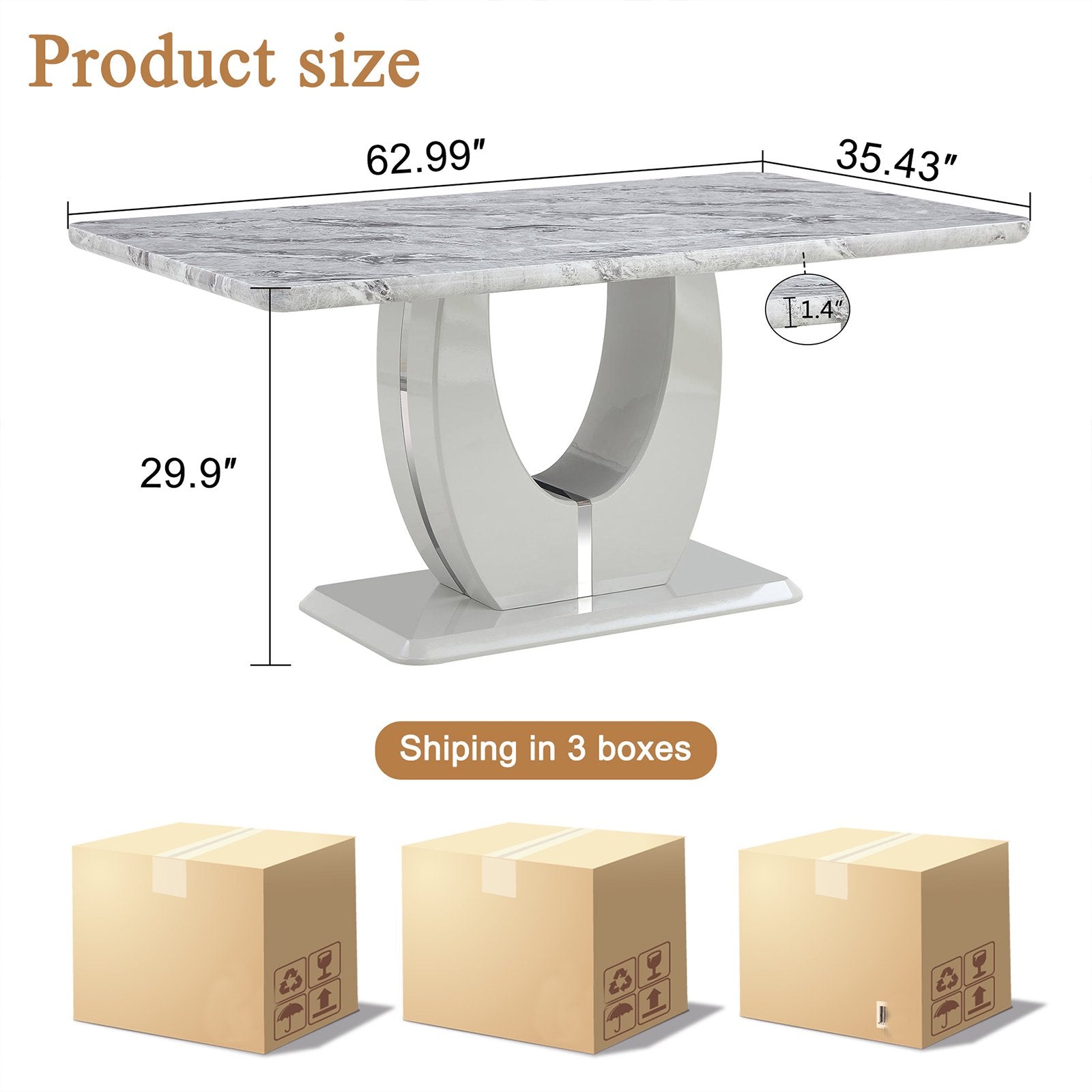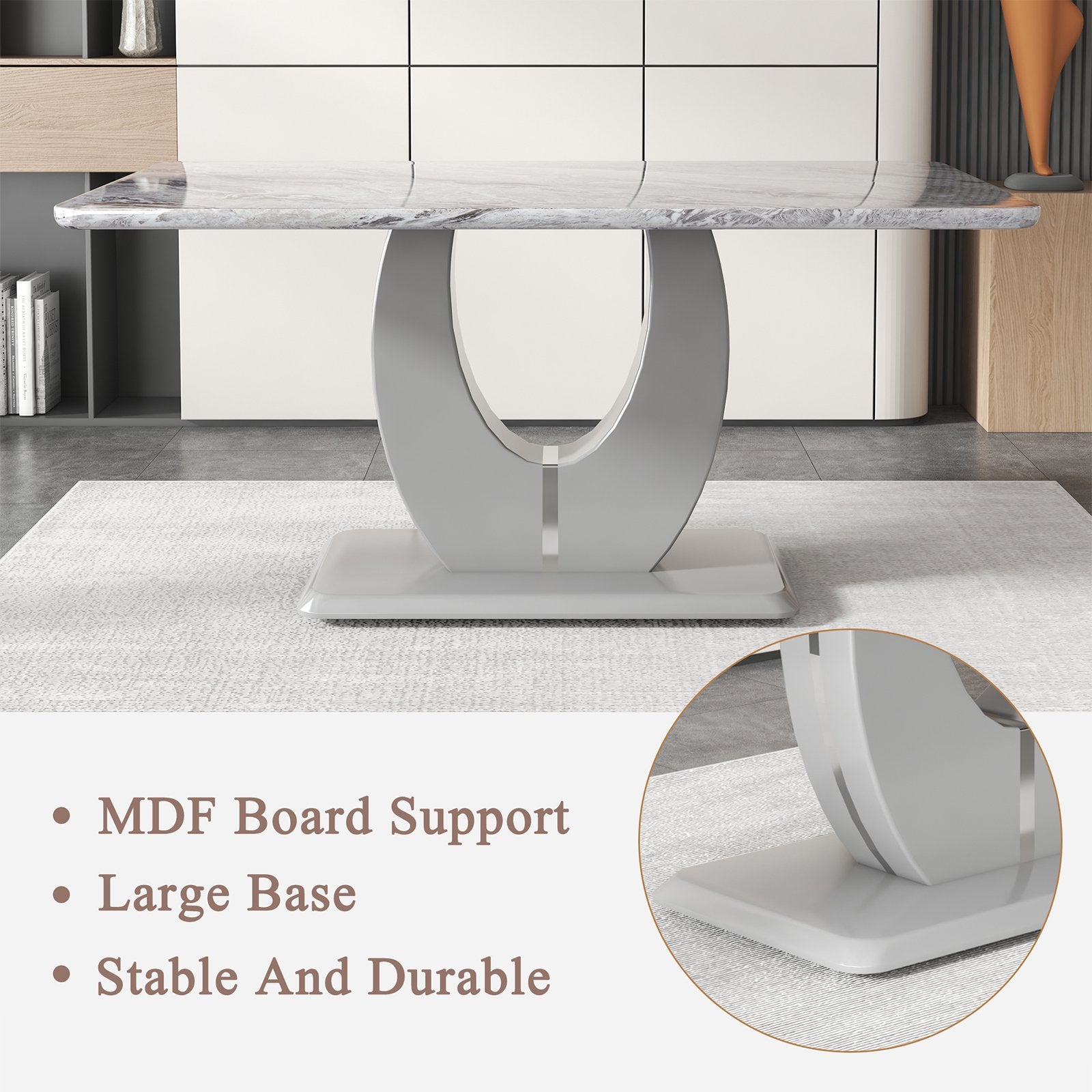 63 inch Faux Marble Dining Table for 6 ,Sudica Faux Marble Dining Room MDF Table with U-Shaped Bracket Support, Gray