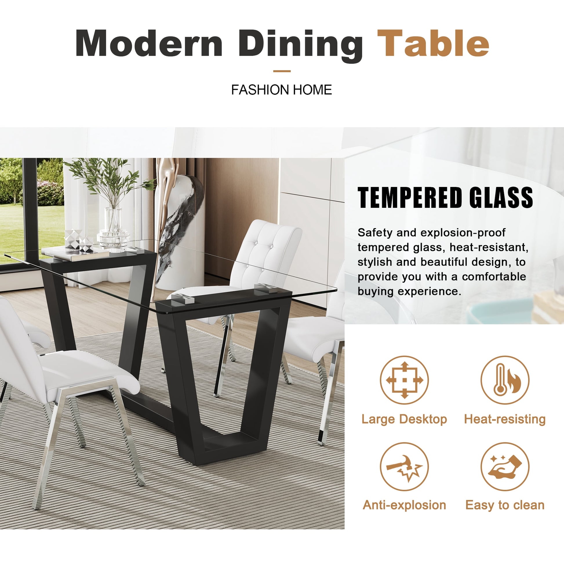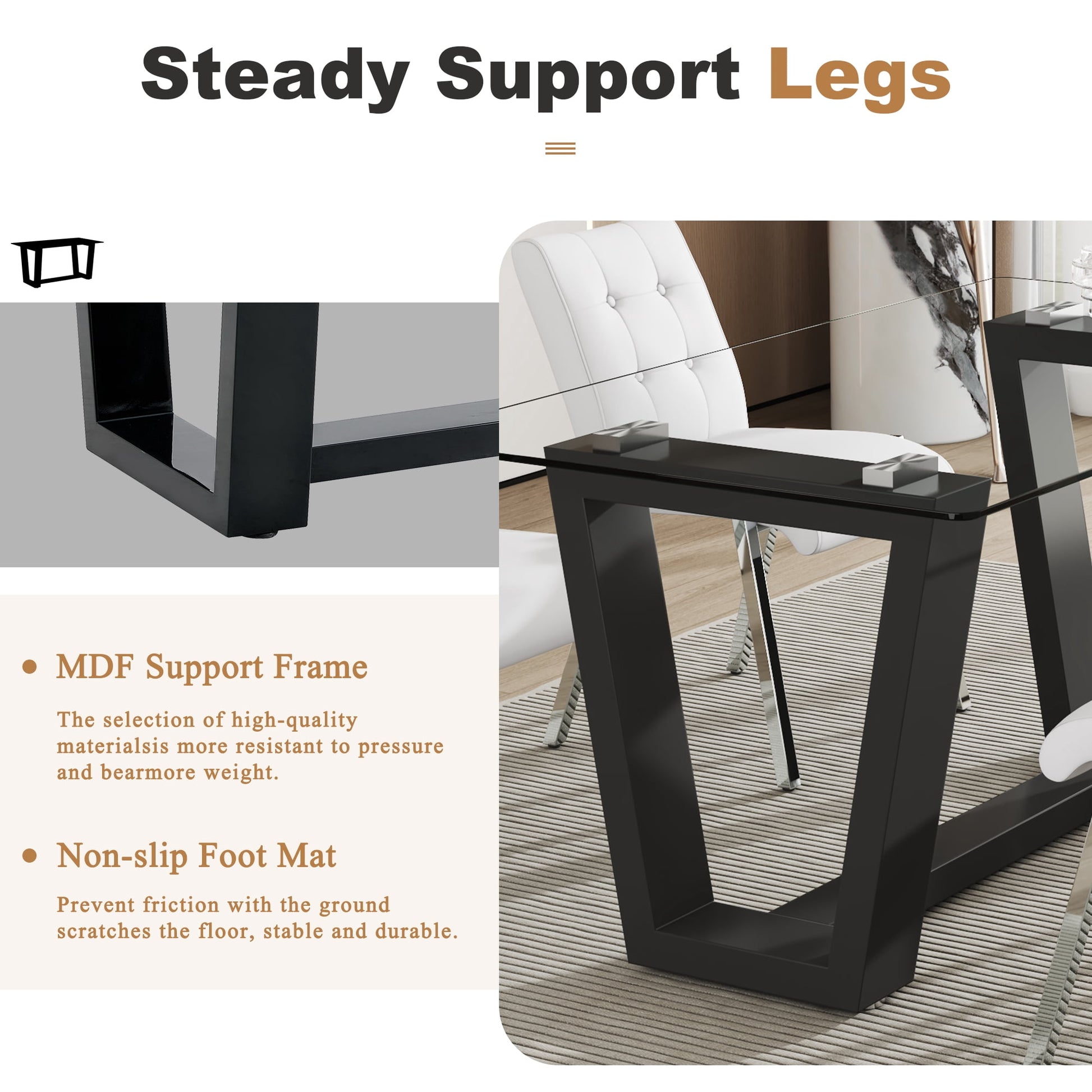 - ¡¾Durable Glass Dining Table¡¿Crafted with a 0.39 inch thick tempered glass top, this table exudes reliability and elegance. The durable MDF base adds a touch of sophistication and ensures stability and long-term durability. With an load-bearing capacity of over 300 pounds, you can confidently gather around this table for countless meals and memorable moments.