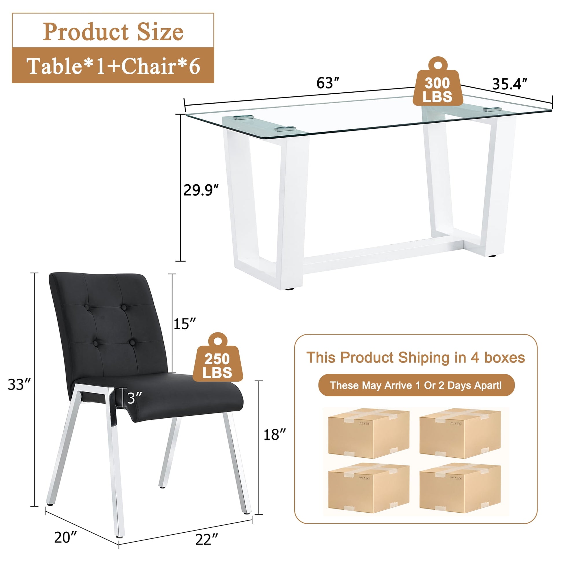 Our glass dining table and chair set combines simplicity and elegance. The table is made of durable tempered glass that resists heat and scratches.The transparent top is sturdy and safe, breaking into harmless pieces if it ever shatters. The chairs feature comfortable seats upholstered in easy-to-clean, waterproof PU leather. With sturdy base, this set offers a stylish and cozy dining experience.
