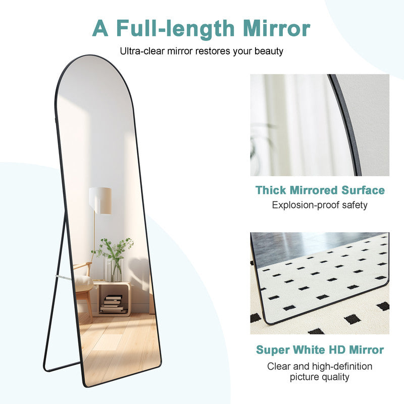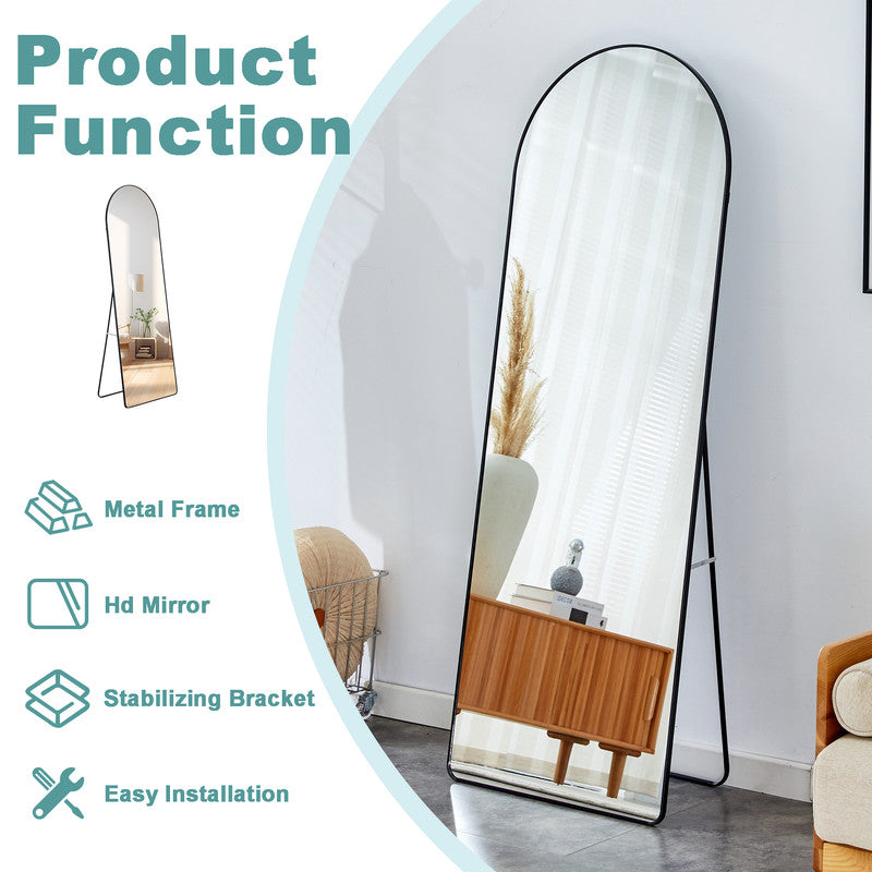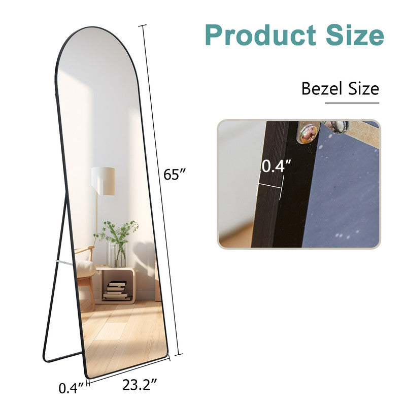 65 inchx23 inch Arched Full Length Mirror with Stand, Wall Hanging or Leaning Body Mirror for Bedroom, Black