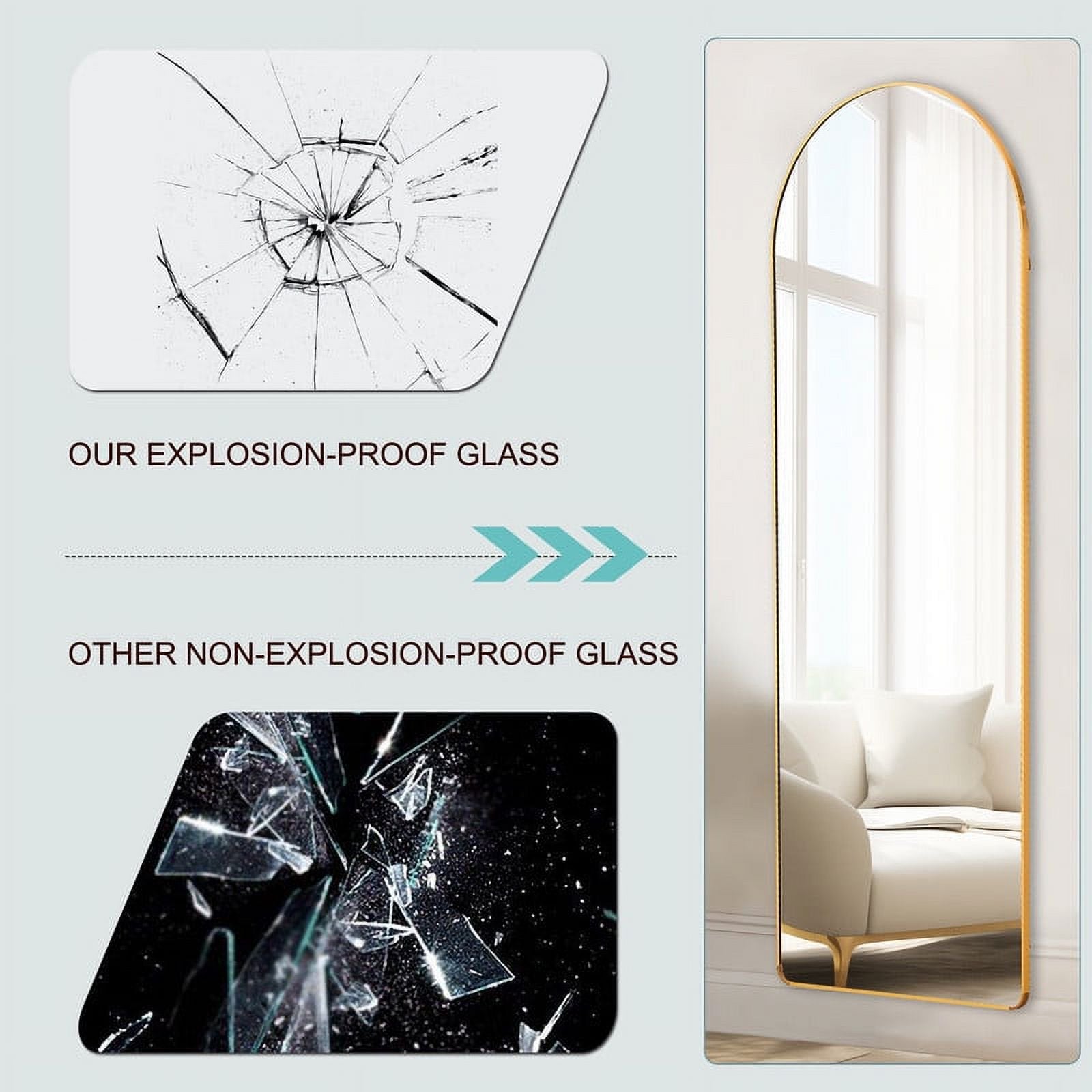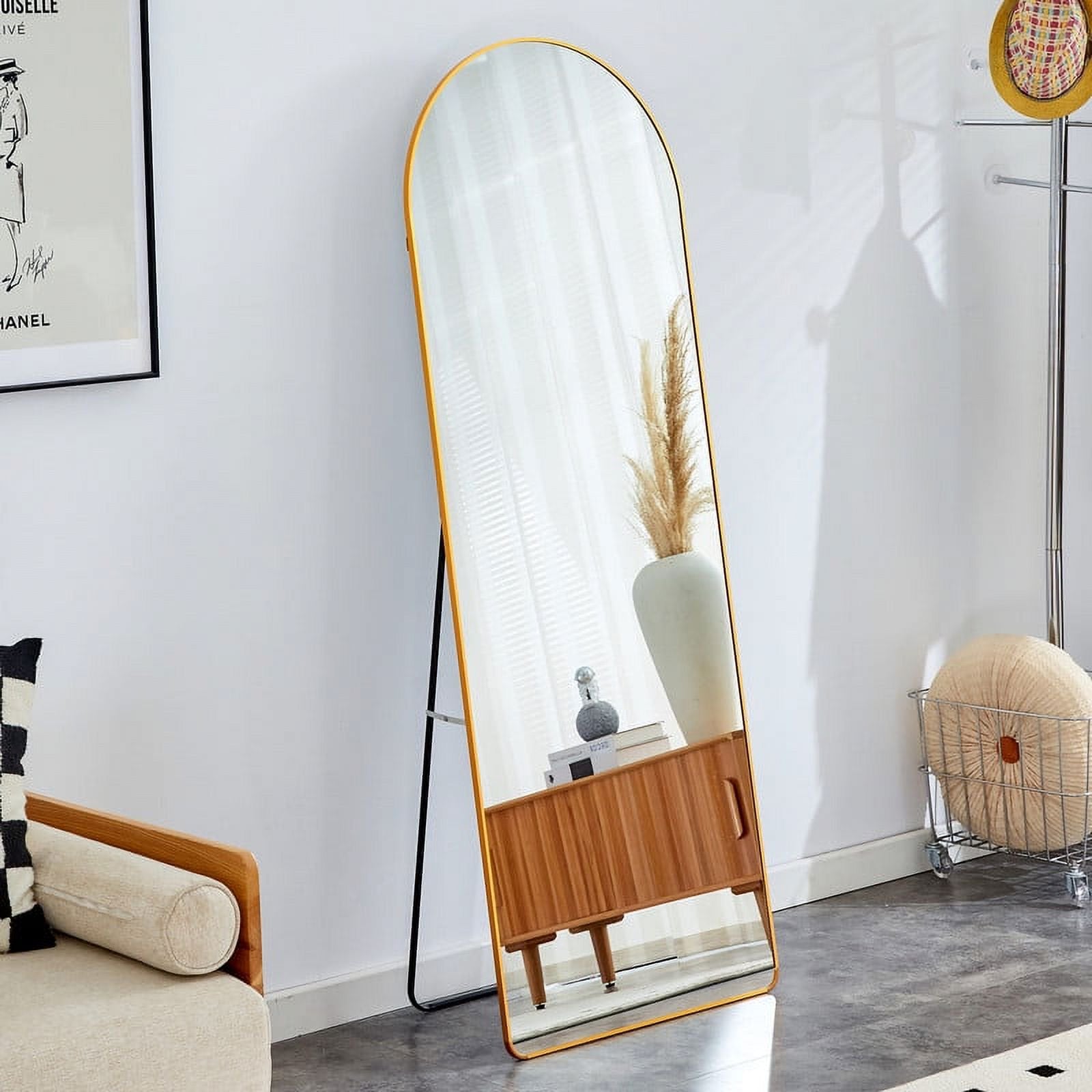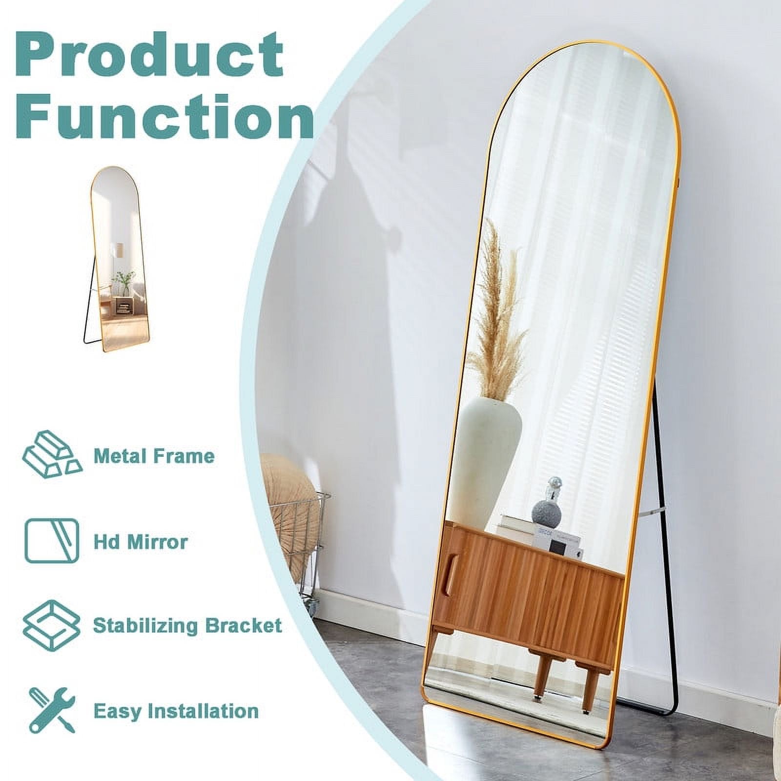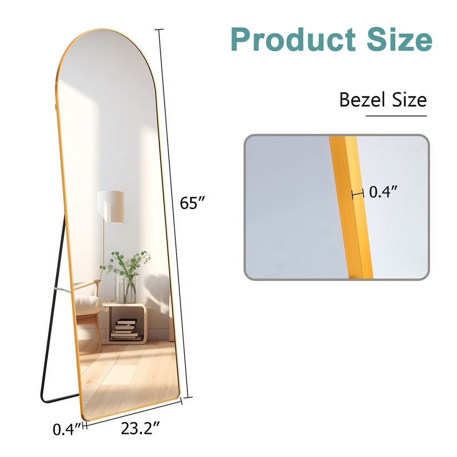 65"x23 inch Arched Full Length Mirror with Stand, Wall Hanging or Leaning Body Mirror for Bedroom, Gold