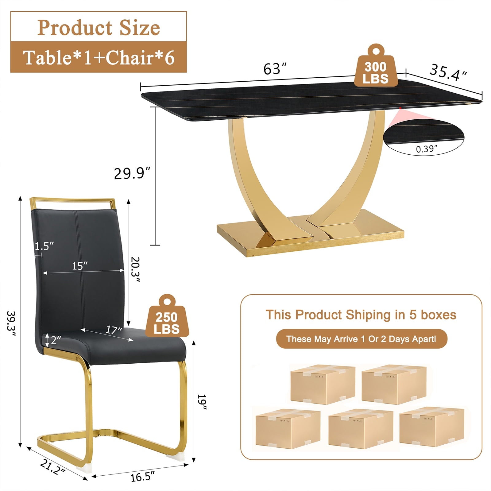 - ¡¾Gold Polished Pedestal Base Dining Table¡¿In contrast to standard iron legs on the market, the legs and frame of our table are polished to a mirror-like finish. This unique treatment imbues the dining table set with a brilliant and captivating presence in any room.