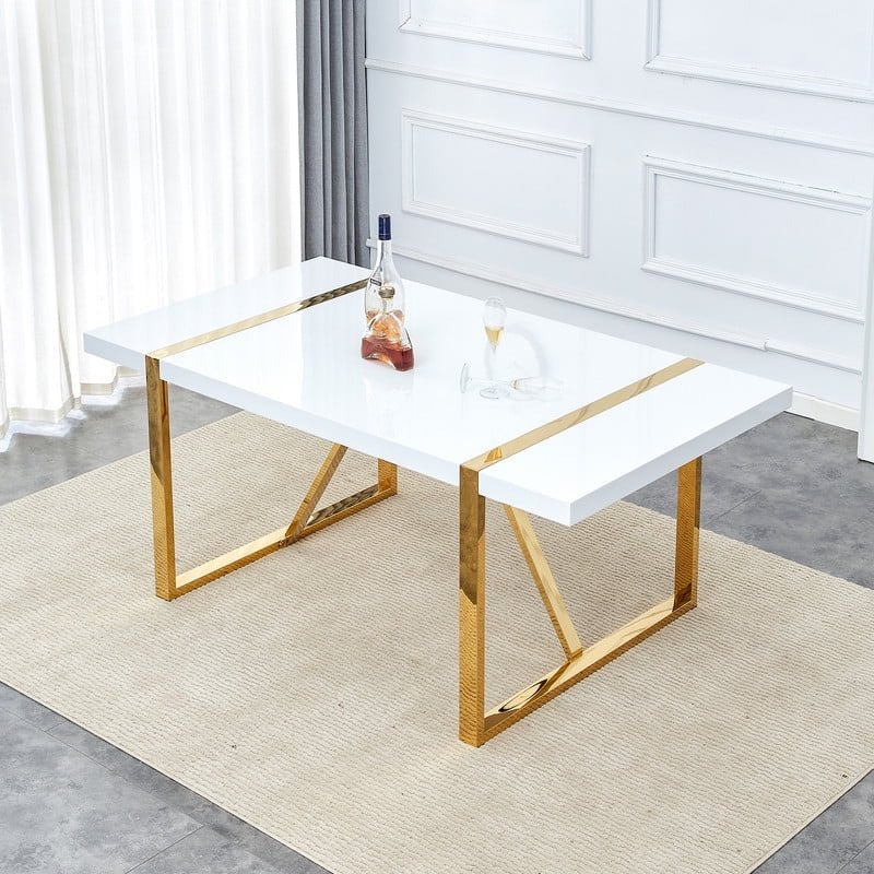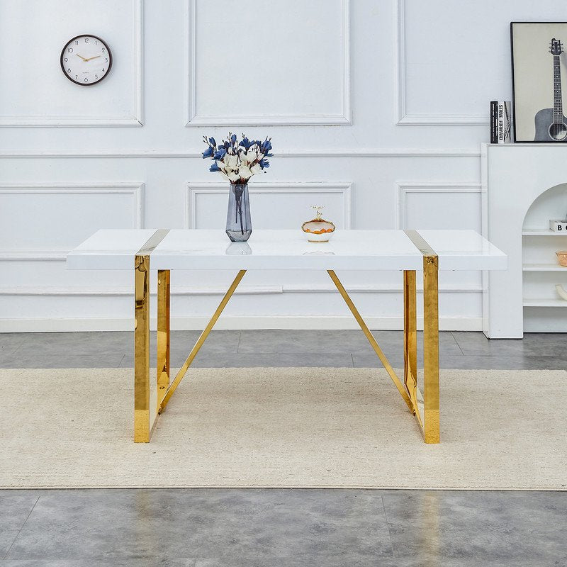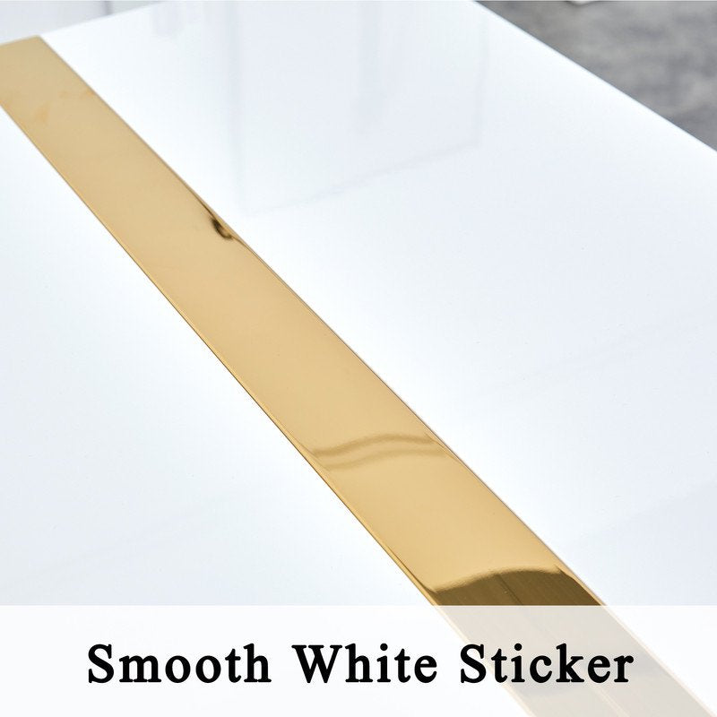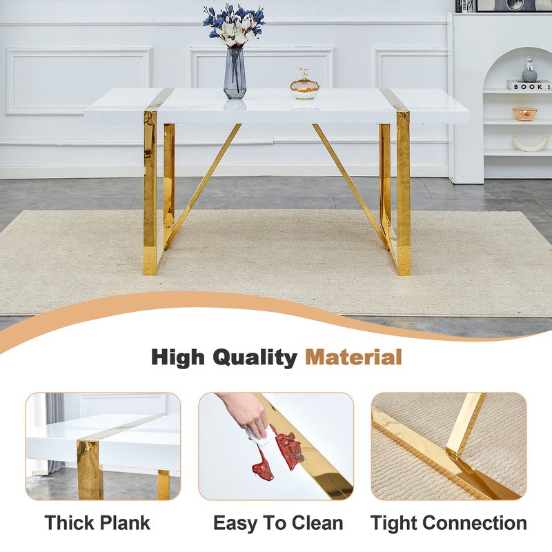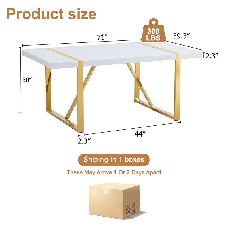 71"Large Dining Table For 6-8 Person,Sudica Rectangular White Tabletop and golden Metal Legs,for Dining Room,Kitchen,Restaurants.