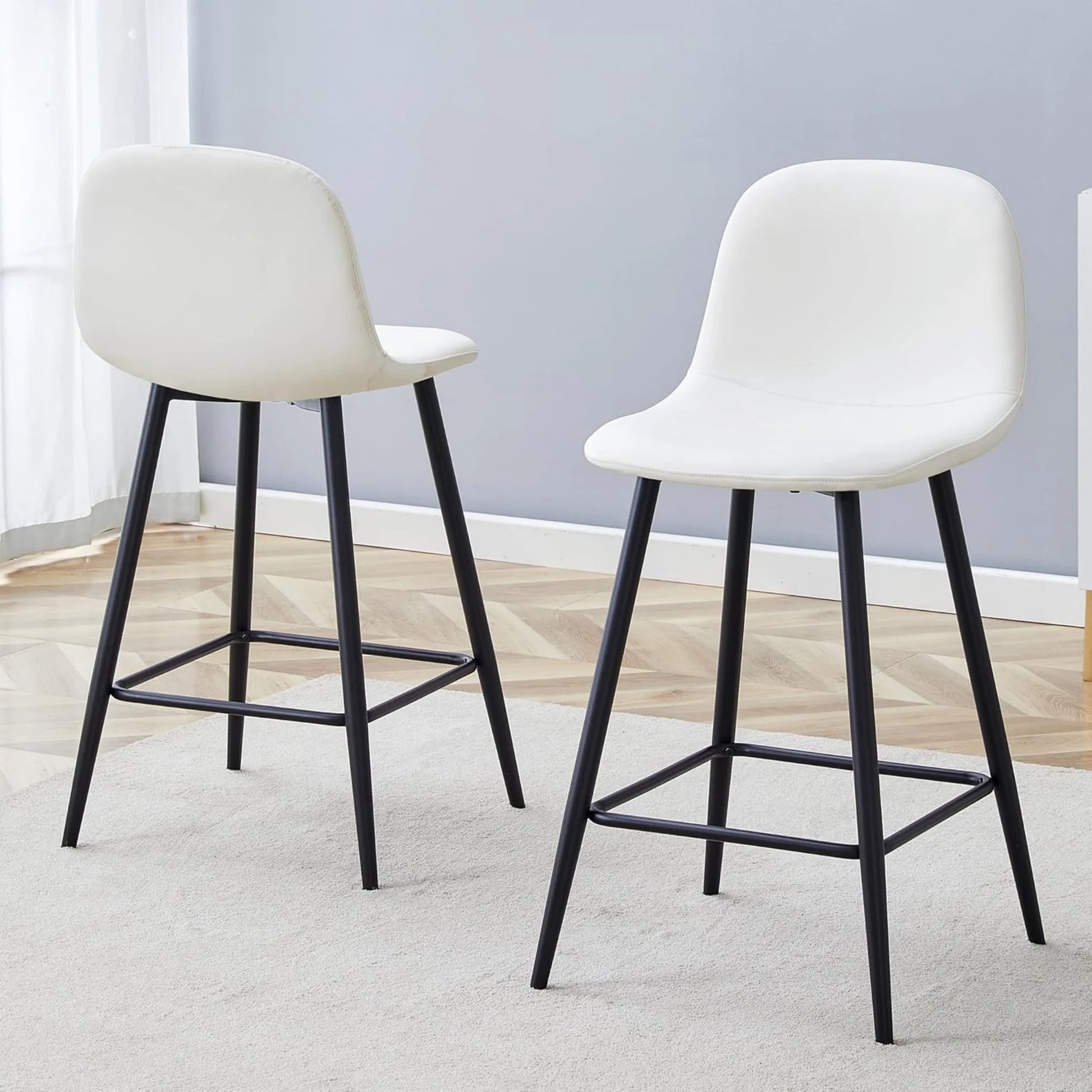 Bar stools Set of 2, Faux PU Leather Counter Height Bar Stools, Dining Room Chairs with Metal Legs & Soft Backrest, Easy to Assemble(White)