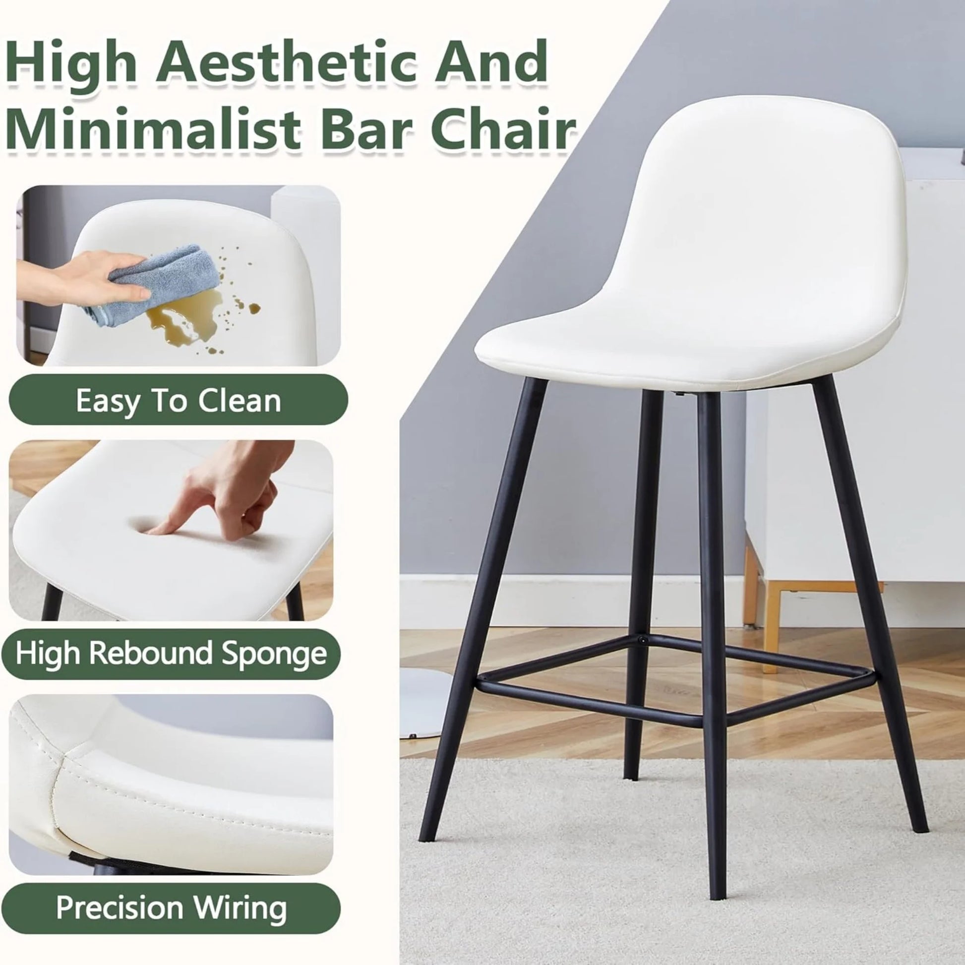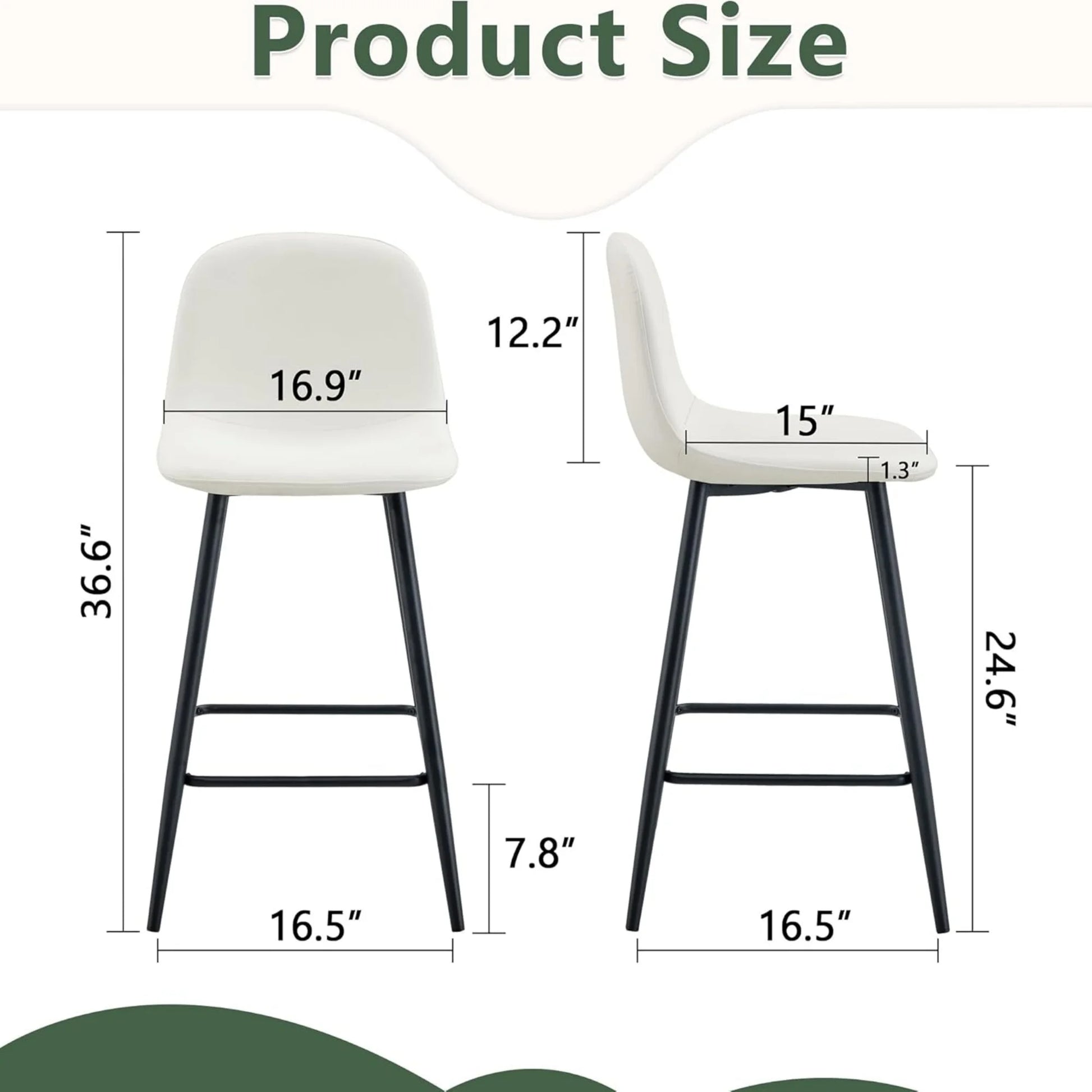 Indulge in modern luxury with our 2-piece counter-height bar stools wrapped in premium faux PU leather, offering velvety softness and stain-resistant durability. Perfect for daily home use or commercial settings, spills wipe clean effortlessly.