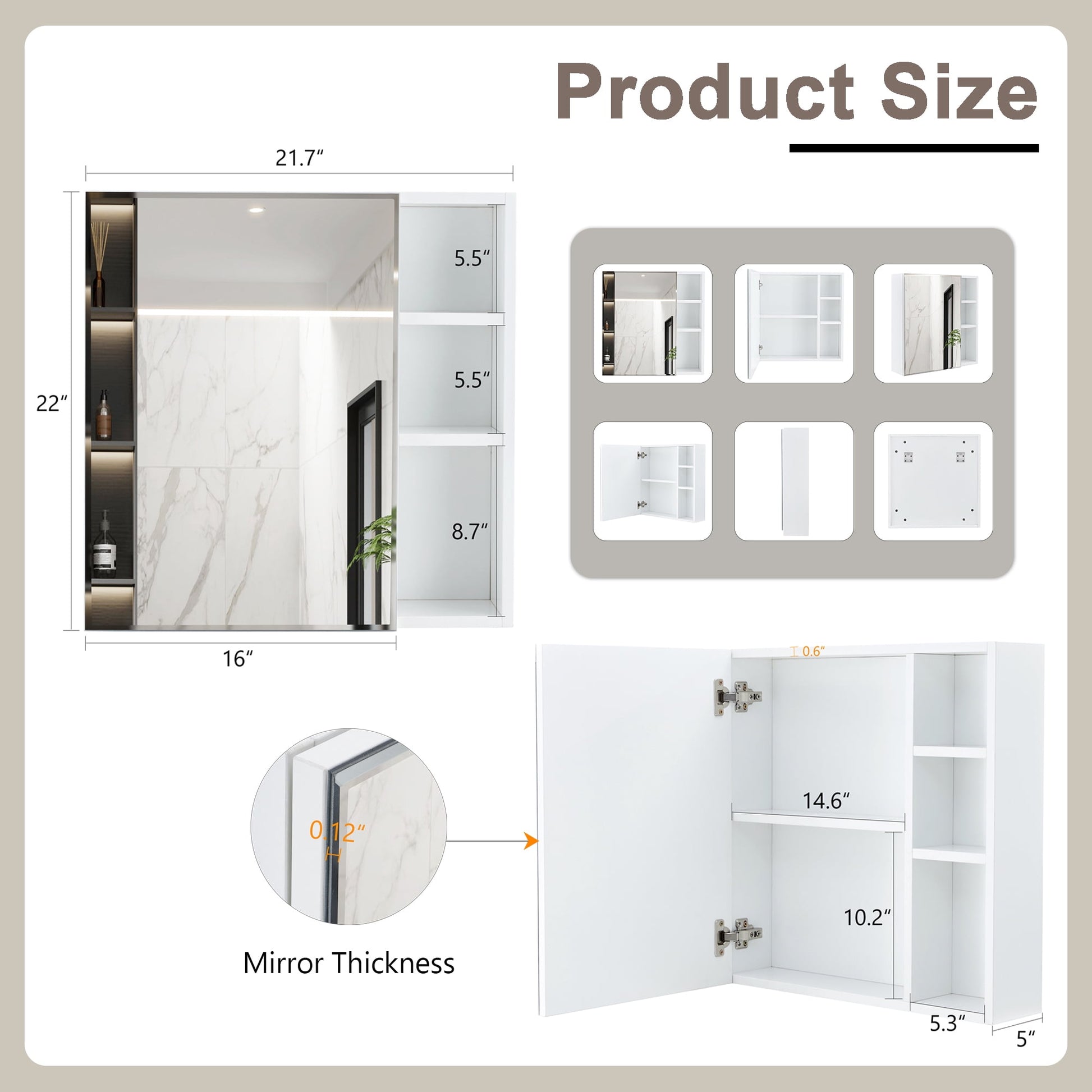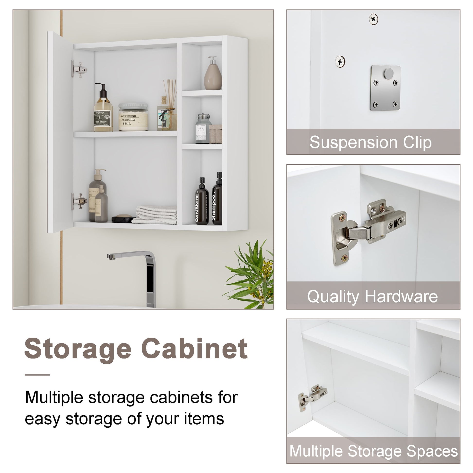 Bathroom Wall Mirror Cabinet, Sudica Medicine Cabinet with Single Door White Storage with Mirrors
