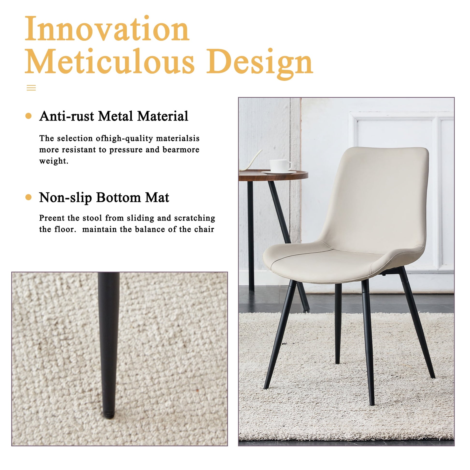 Crafted with care, these dining chairs feature seats made of breathable faux leather that is both cozy and classy. The black metal legs add a modern flair to the overall design. Cover with faux leatherm our kitchen are easy to maintance and stylish. The tall and thick foam backrest offers superior support for your back, ensuring maximum comfort. The upholstered cushion and wide seat guarantees a soft and comfortable seating experience. Finished in timeless design, these dining room chairs effortlessly blend with various decorating styles, making them a perfect fit for any living room, kitchen, or dining area.