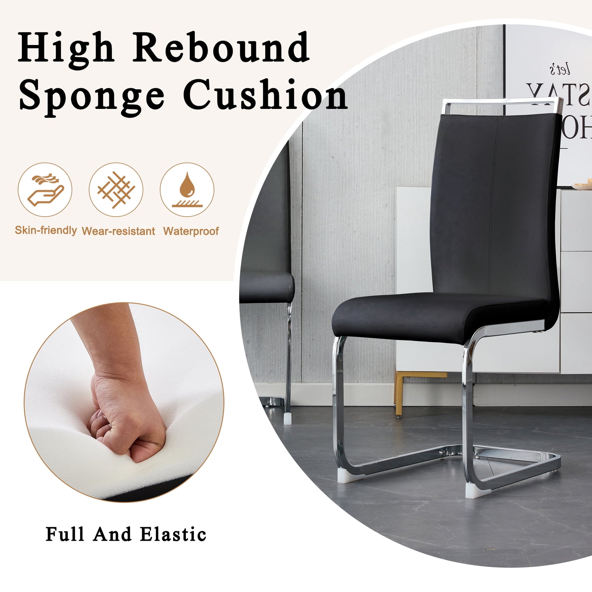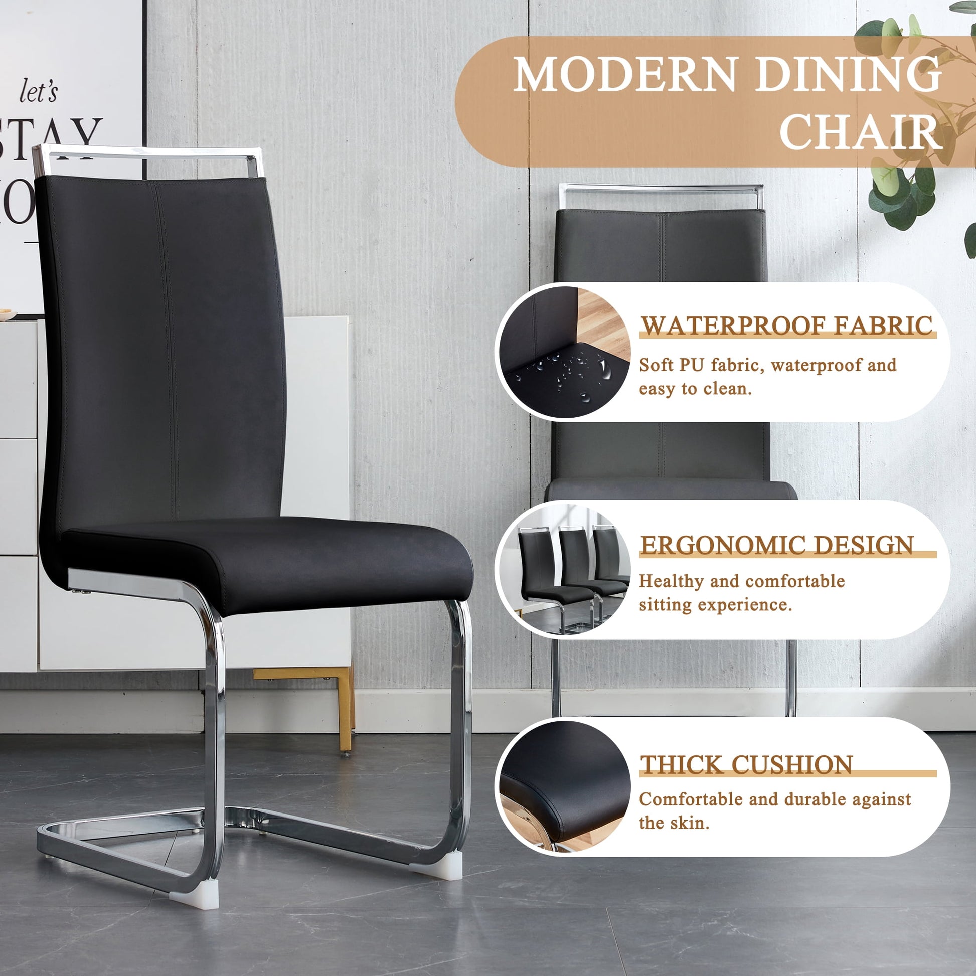 - ¡¾Comfy Dining Chairs¡¿These dining room chairs offer ultimate comfort with their high-quality faux leather upholstery and dense padding. Easy to clean with water and oil resistance. The ergonomic high backrest and foam padding provide excellent support and ensure a comfortable sitting position, perfect for long dining sessions with friends or family.