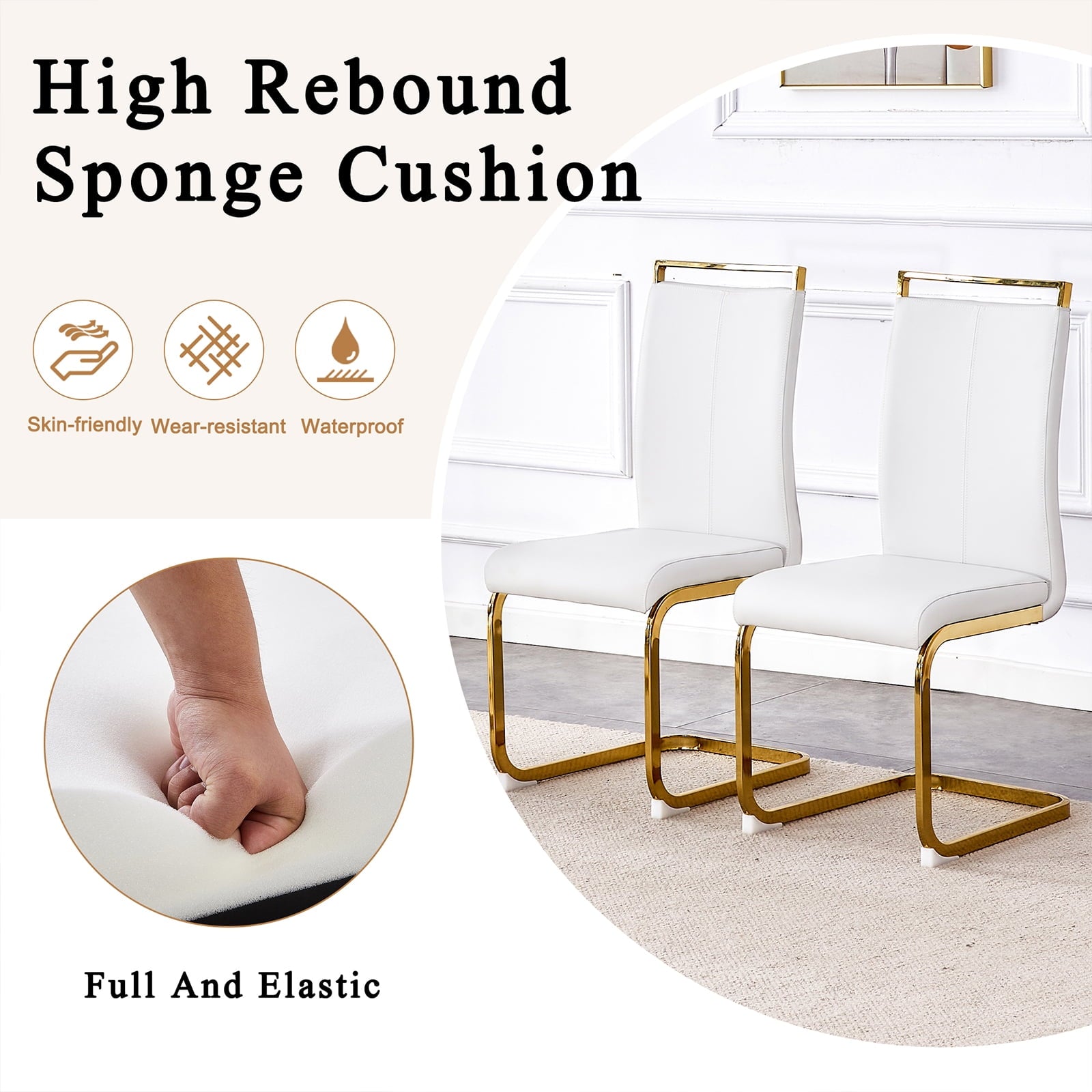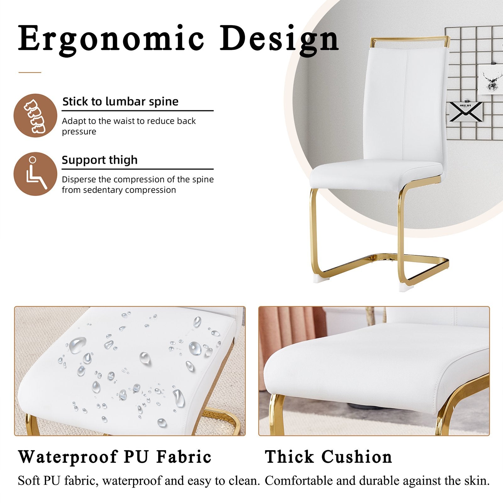 - ¡¾Comfortable Upholstered PU Leather Dining Chair Seat¡¿The generously sized seat and high backrest of our dining chairs provide excellent back support, enabling you to sit in comfort for extended periods of time while enjoying meals at the table.