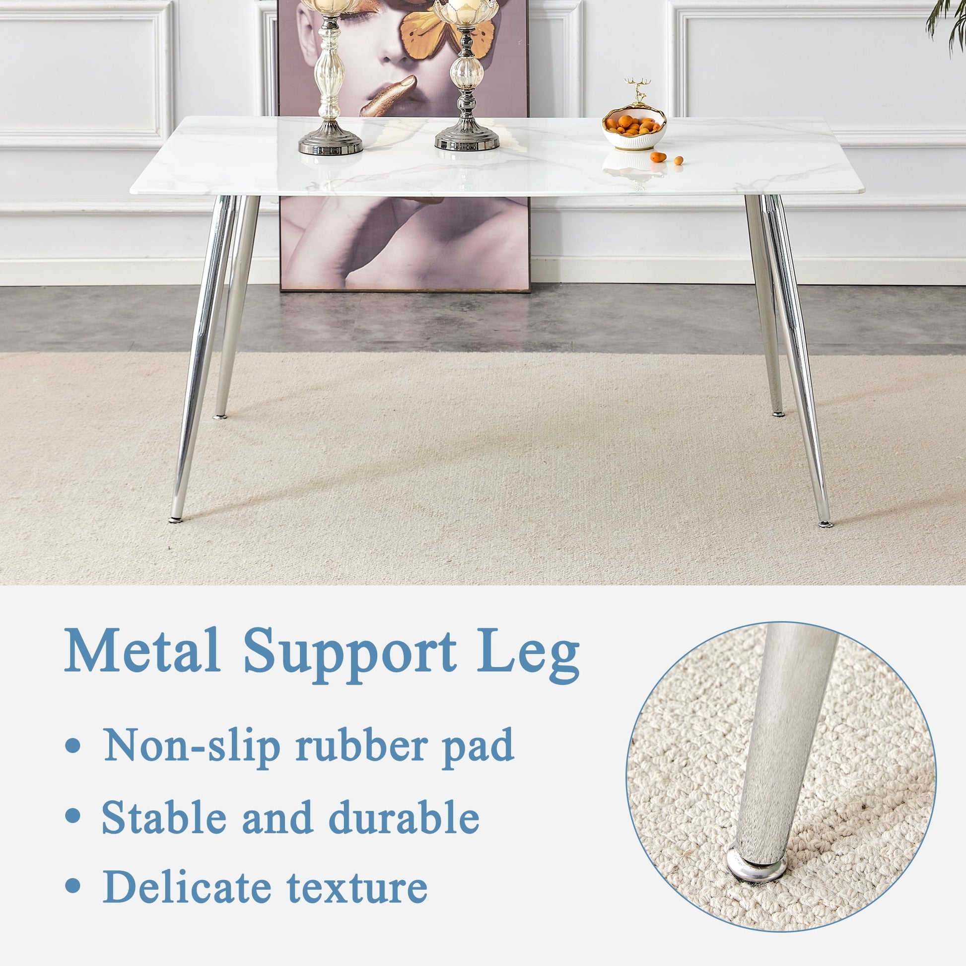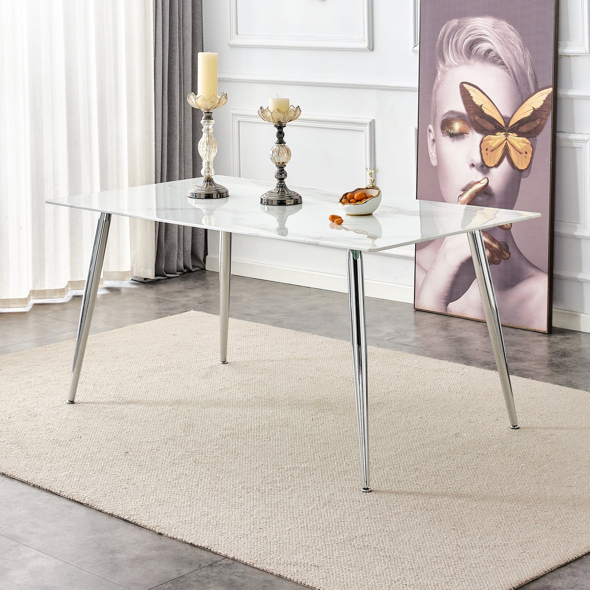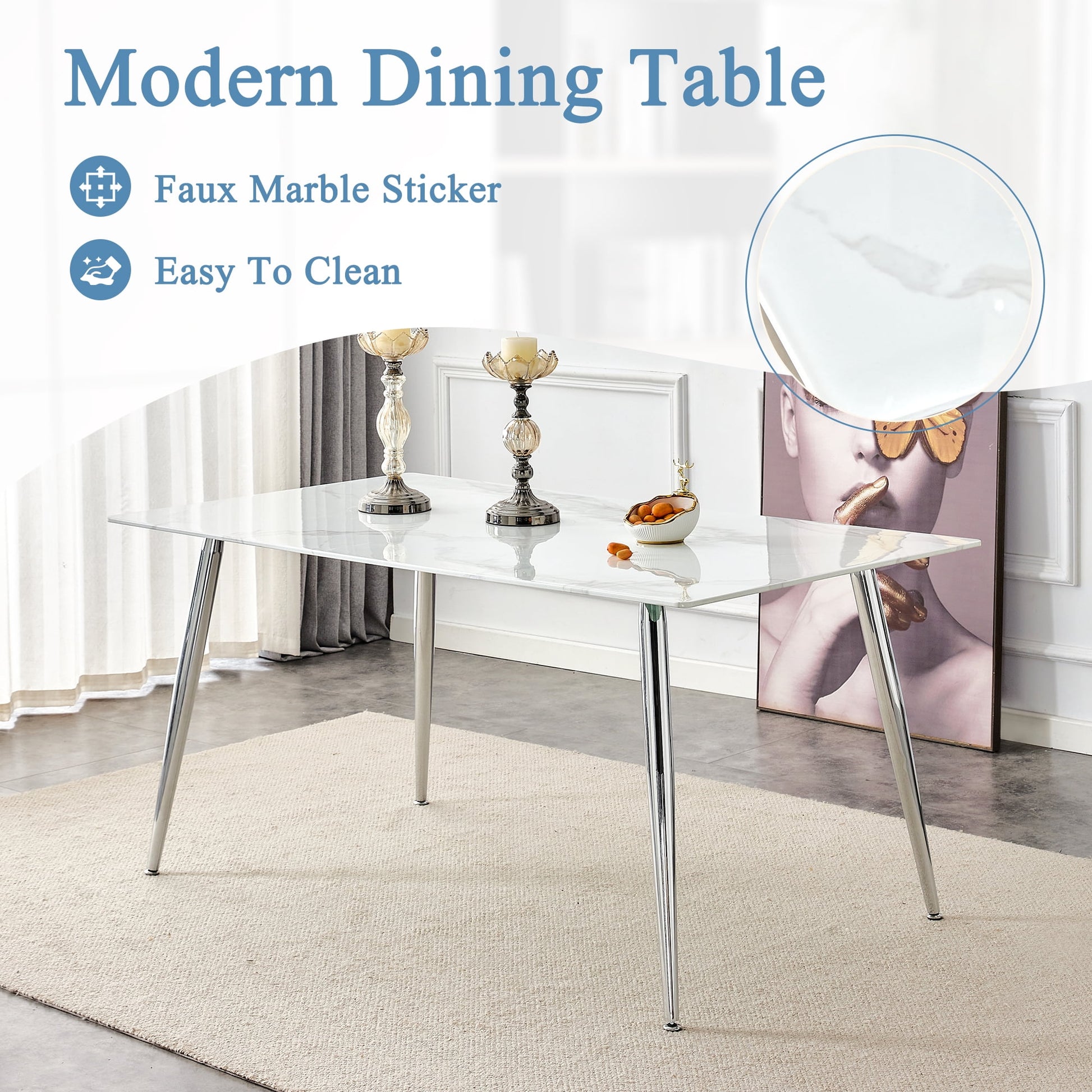 Dining Table with Marble Grain for 6, Sudica 63" Large Rectangular Kitchen Table with 4 Silver Plating Metal Legs