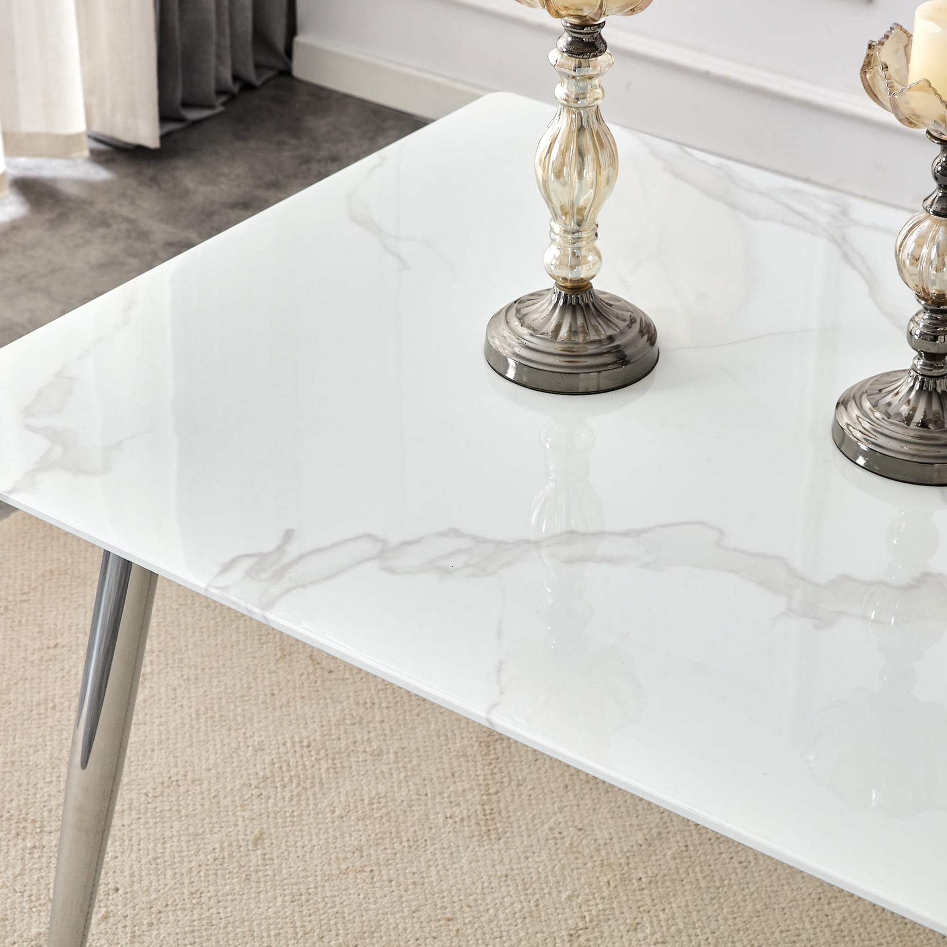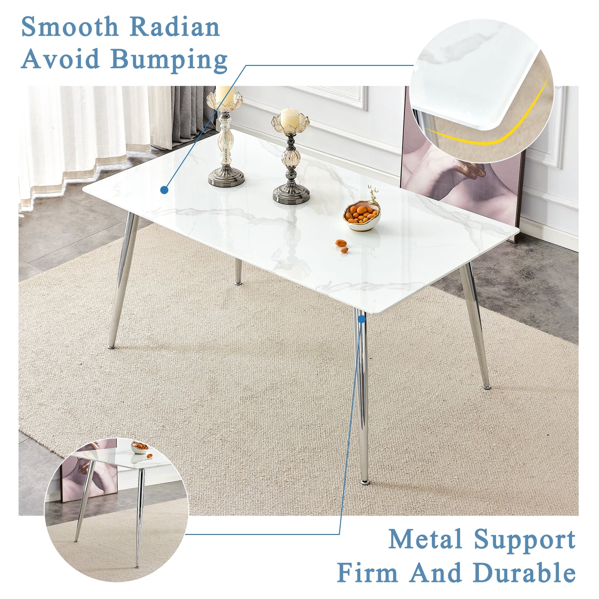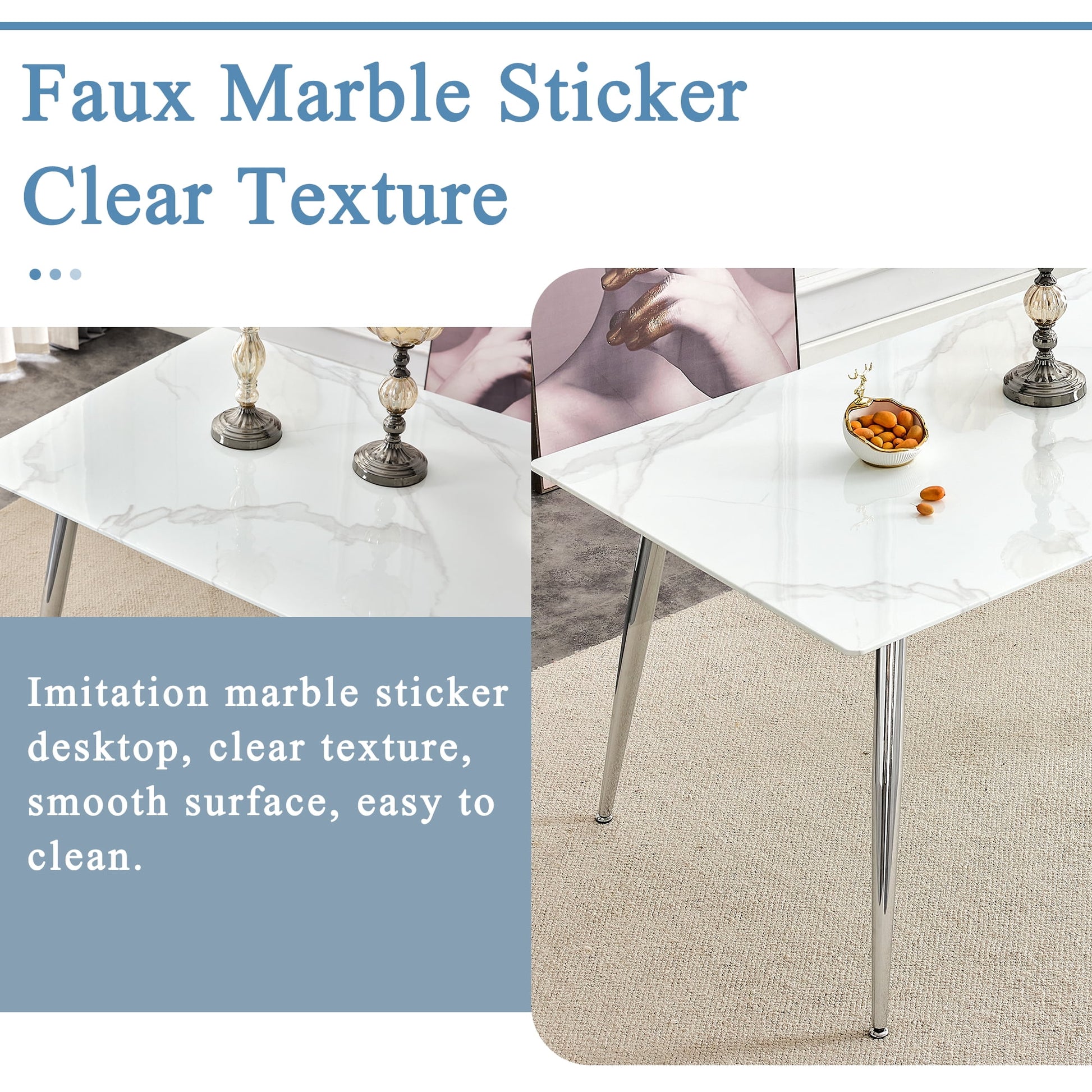 Dining Table with Marble Grain for 6, Sudica 63" Large Rectangular Kitchen Table with 4 Silver Plating Metal Legs