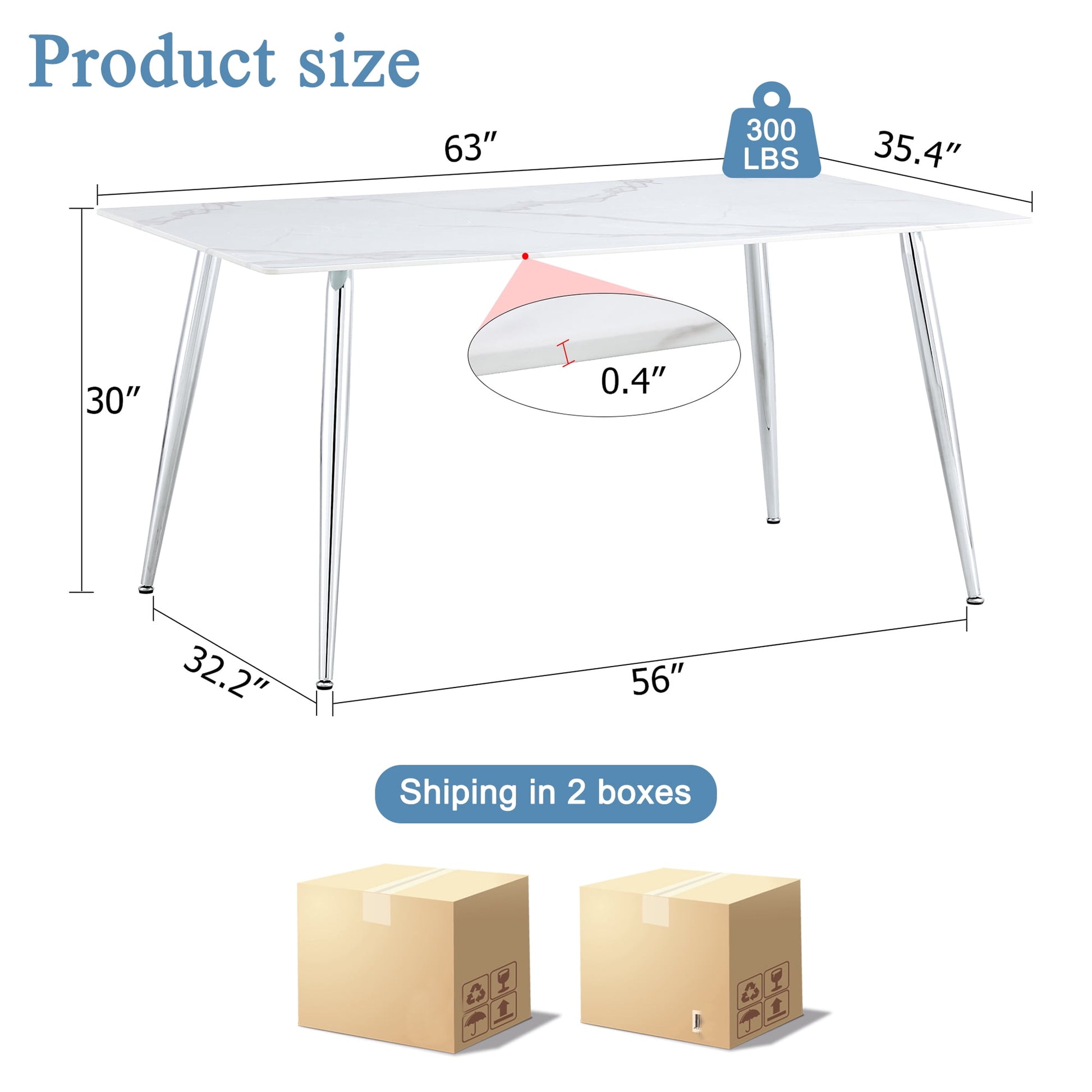 - ¡¾Large Dining Room Table¡¿: This sleek and contemporary marble rectangle dining table measures 63"W x 35.4"D x 30"H. Its generous size comfortably accommodates 4-6 people, providing ample space for enjoyable dining experiences. Whether placed in a modern dining area or traditional kitchen, this versatile table seamlessly blends with any decor style.