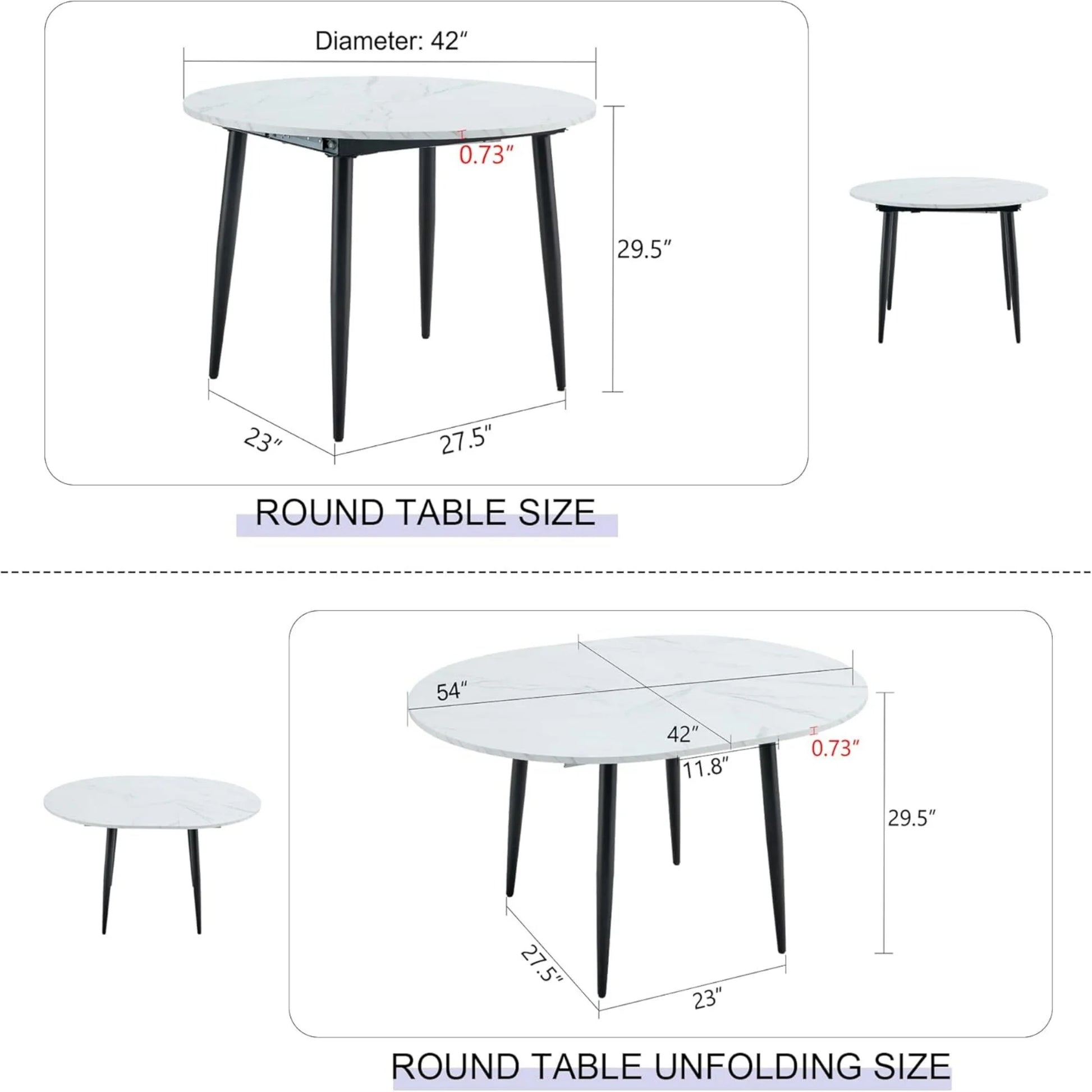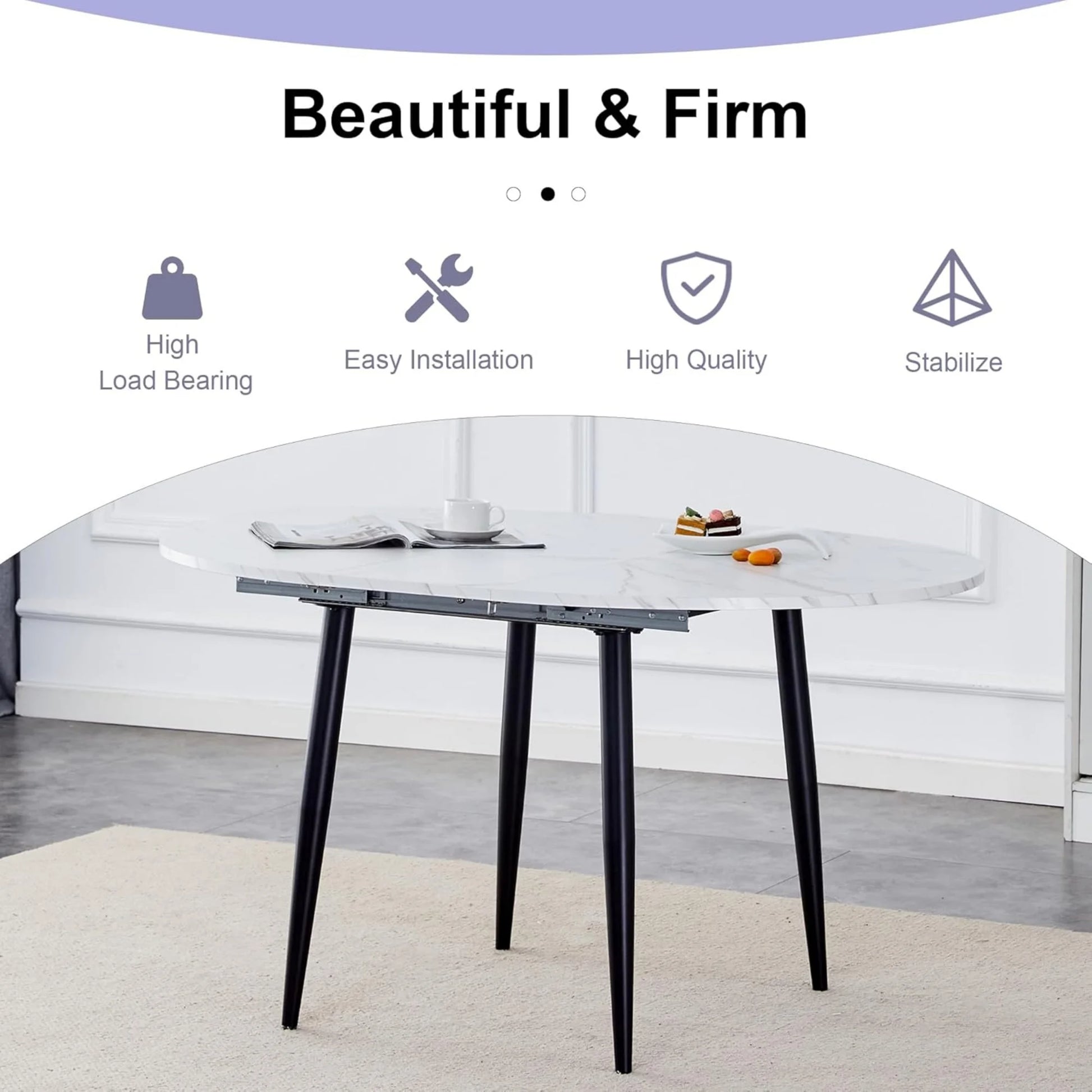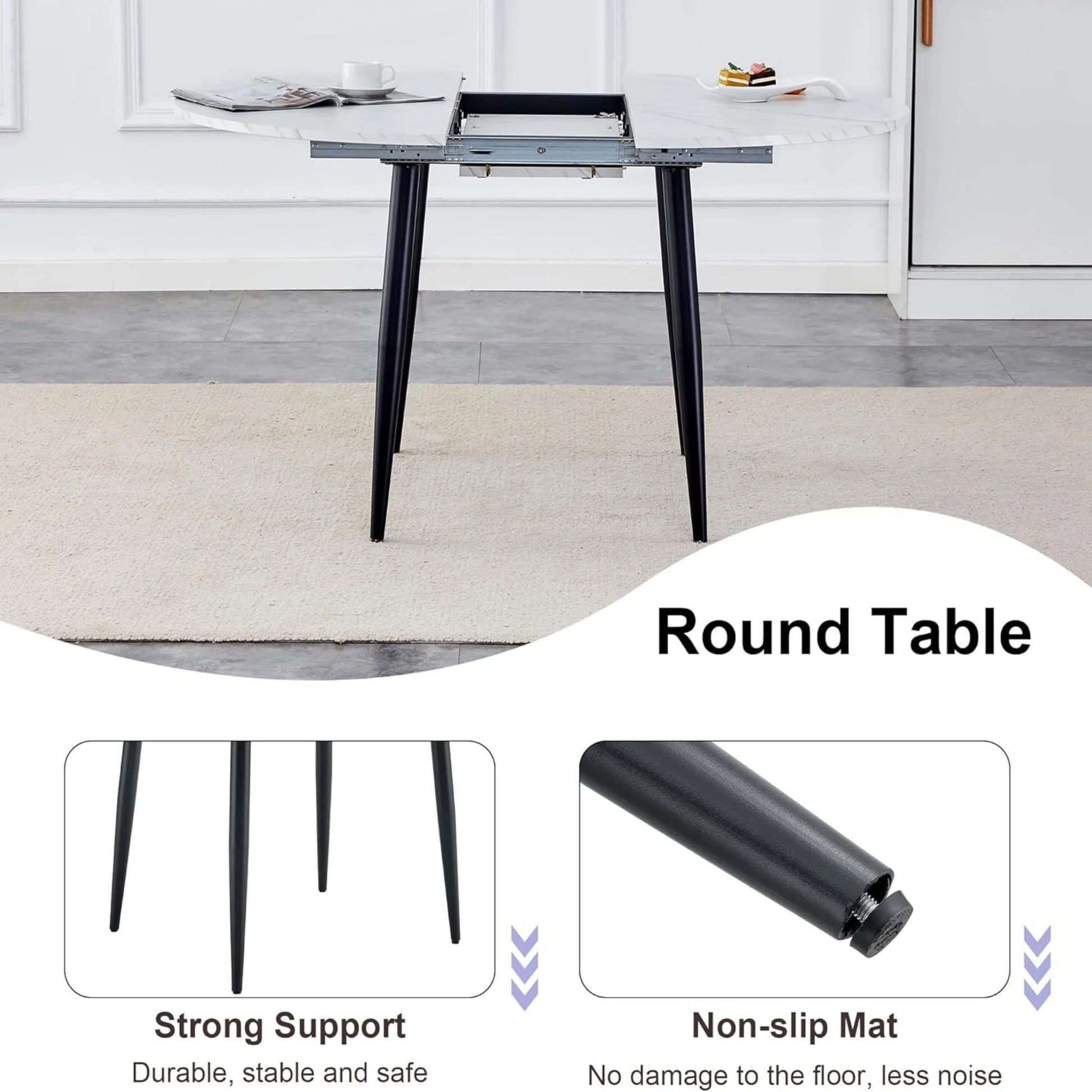 【Round Extendable Table Top】The table features a round MDF table top with a clever extendable mechanism, allowing you to adjust the table size according to your needs, perfect for family gatherings or dinner parties