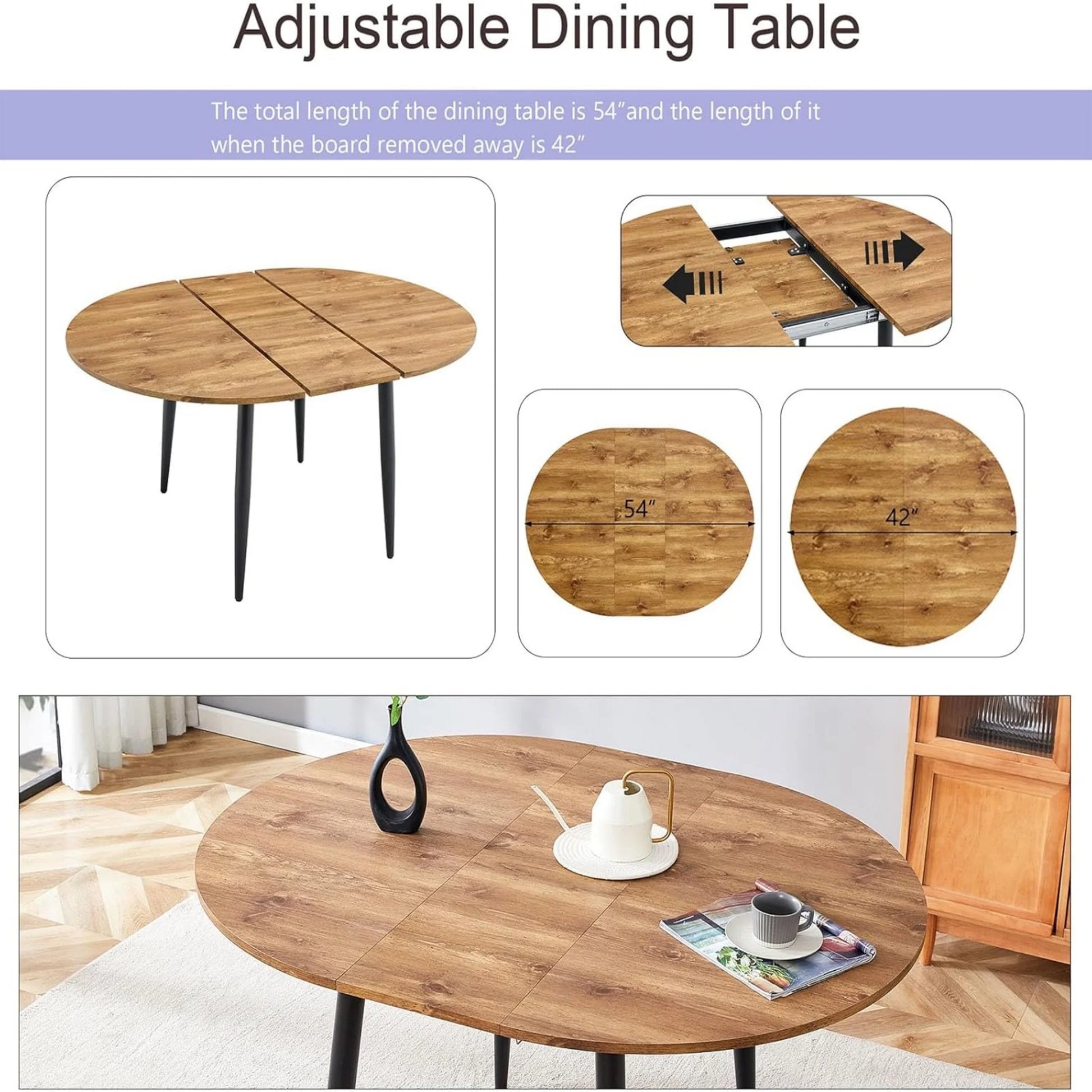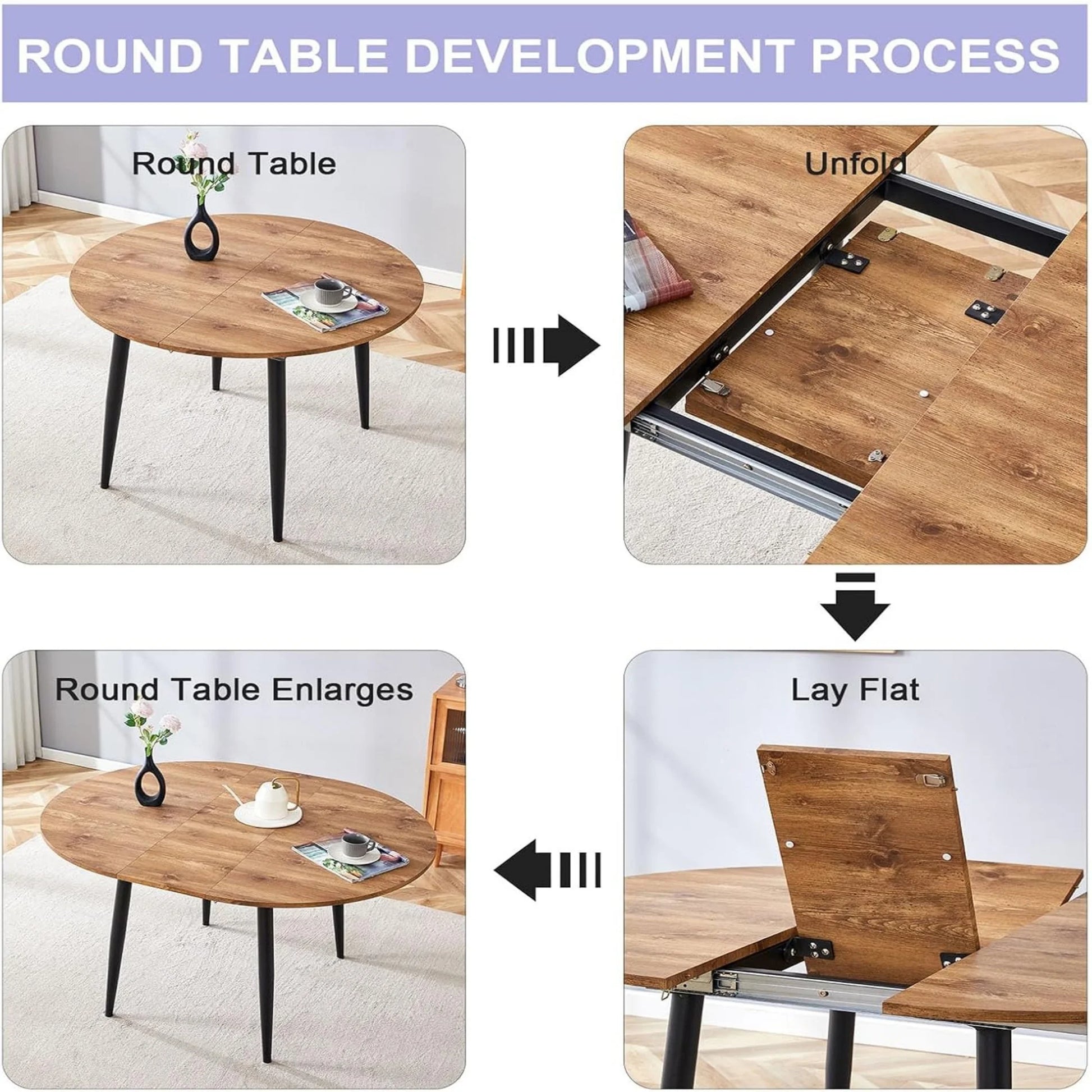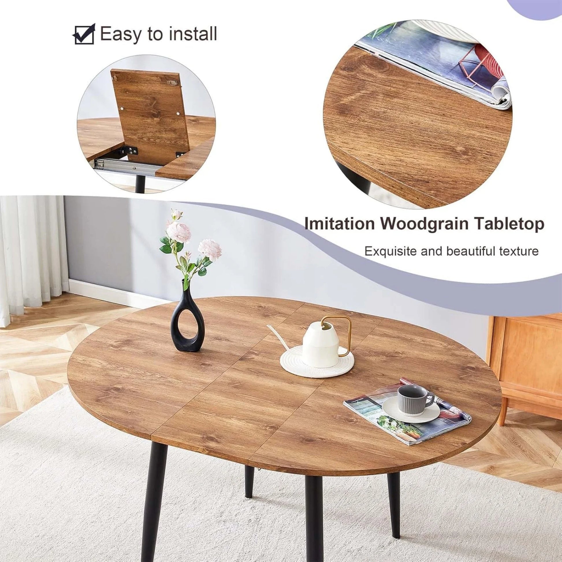 【Round Extendable Table Top】The table features a round MDF table top with a clever extendable mechanism, allowing you to adjust the table size according to your needs, perfect for family gatherings or dinner parties