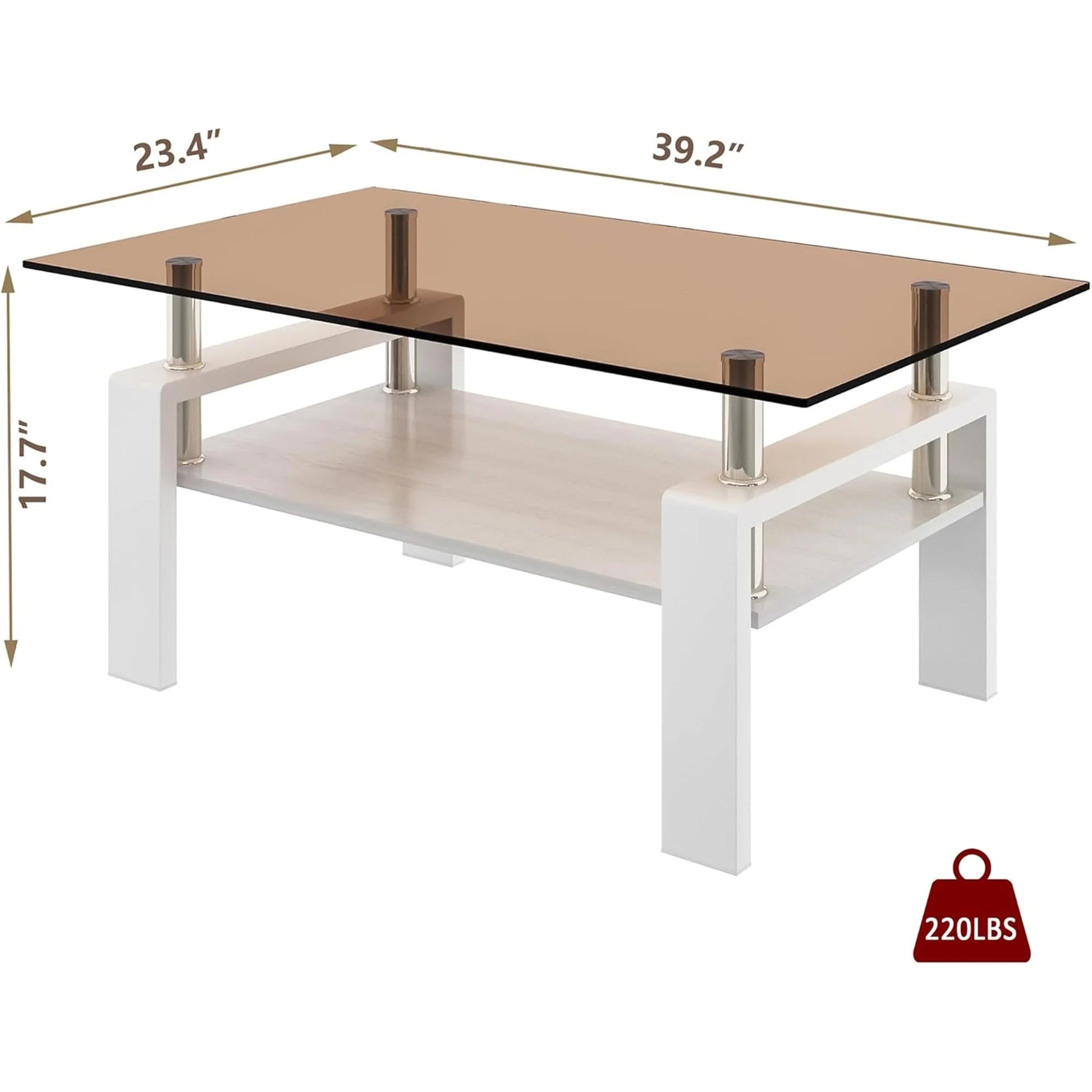 Spacious and Sturdy Design: Measuring 39.2"L x 23.4"W x 17.7"H with a load-bearing capacity of 220 lbs, this glass coffee table offers ample space and reliable support, making it ideal for any living room or office setting.