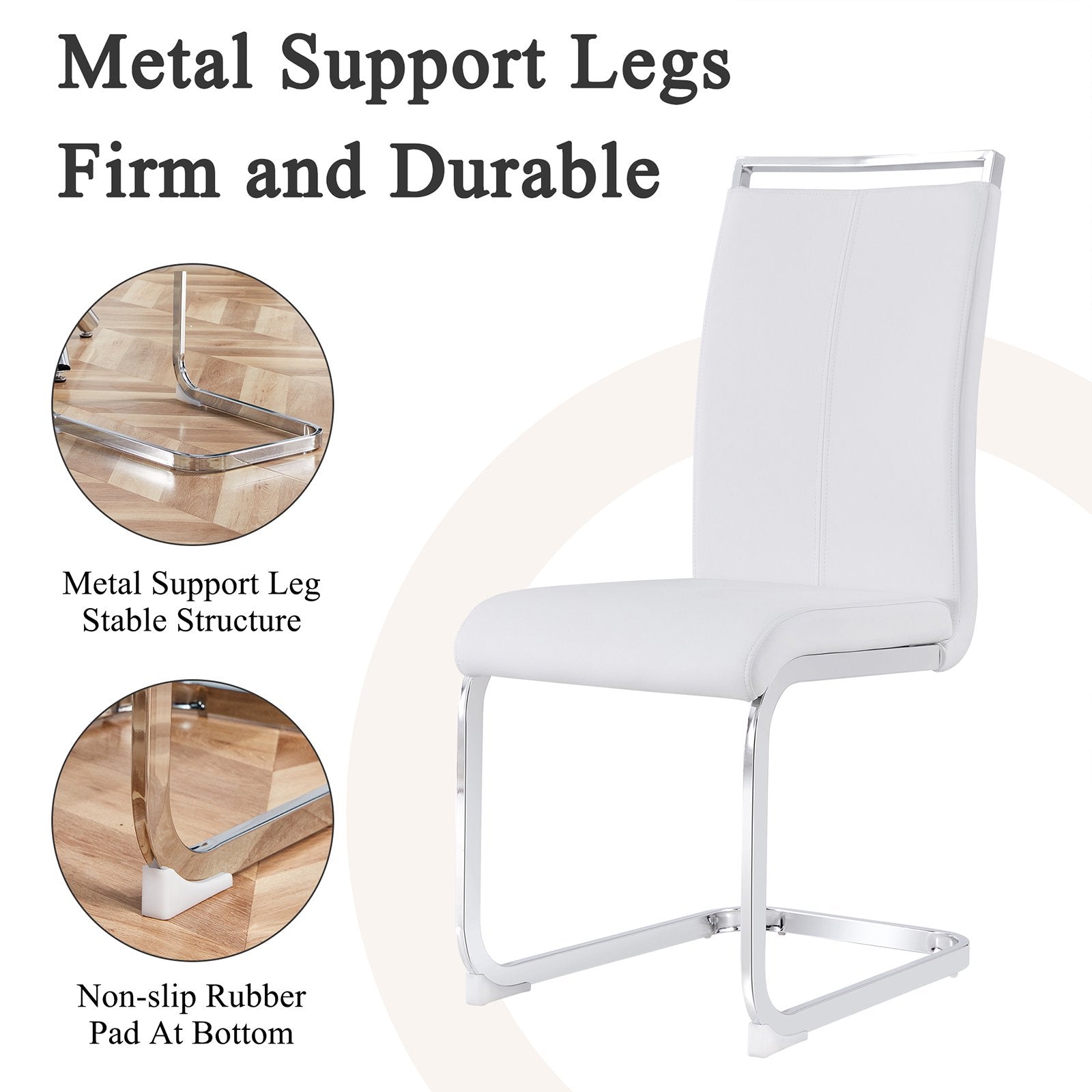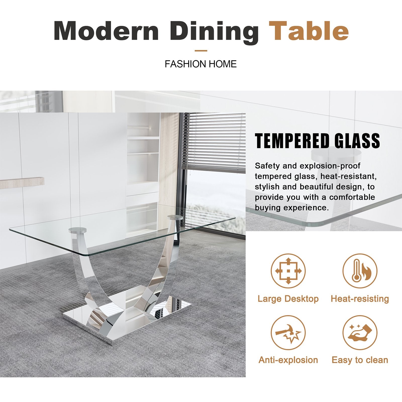 Our glass dining table and chair set combines simplicity and elegance. The table is made of durable tempered glass that resists heat and scratches.The transparent top is sturdy and safe, breaking into harmless pieces if it ever shatters. The chairs feature comfortable seats upholstered in easy-to-clean, waterproof PU leather. With sturdy U shap metal legs, this set offers a stylish and cozy dining experience.