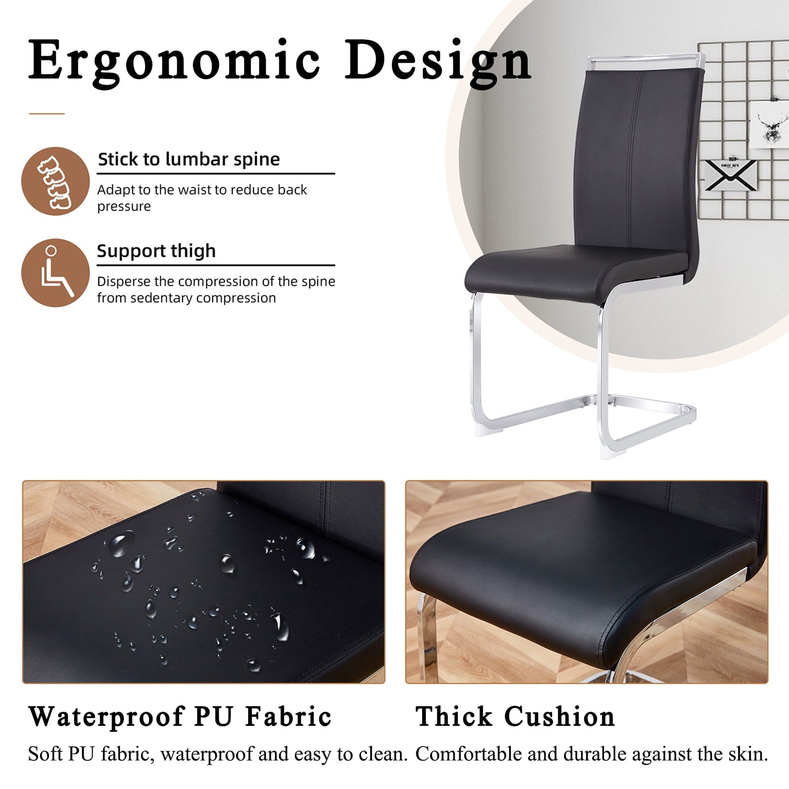 - ¡¾Comfortable Dining Chair¡¿ Enjoy all-day comfort with the ergonomic high back and wide padded seat. The chair features high-quality faux leather upholstery that is water and oil resistant, making it super easy to clean. With its density foam, the chair remains resistant to deformation even after long-term use. The chair also includes an anti-scratch pad to prevent accidental wear and protect your floors from scratches and sliding.