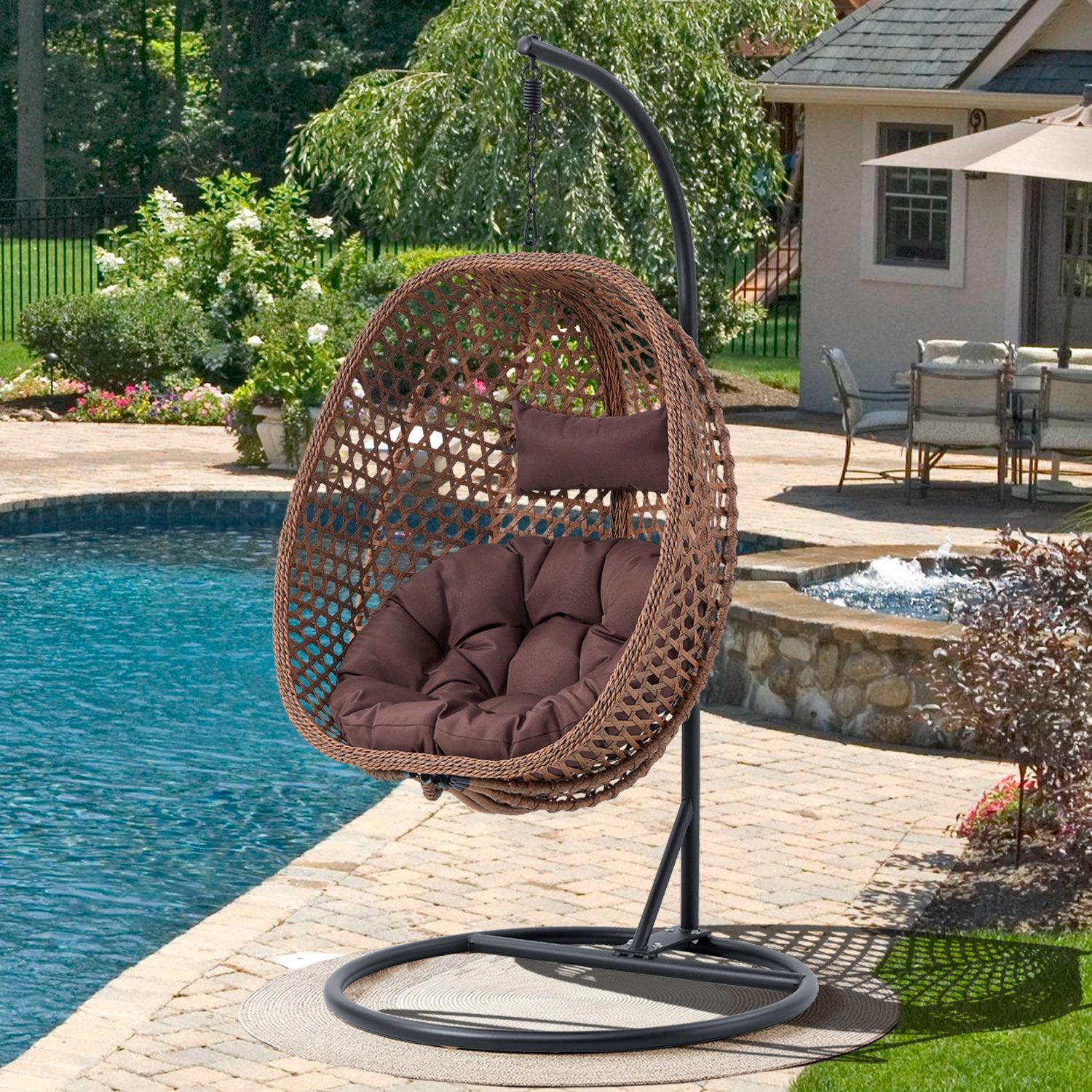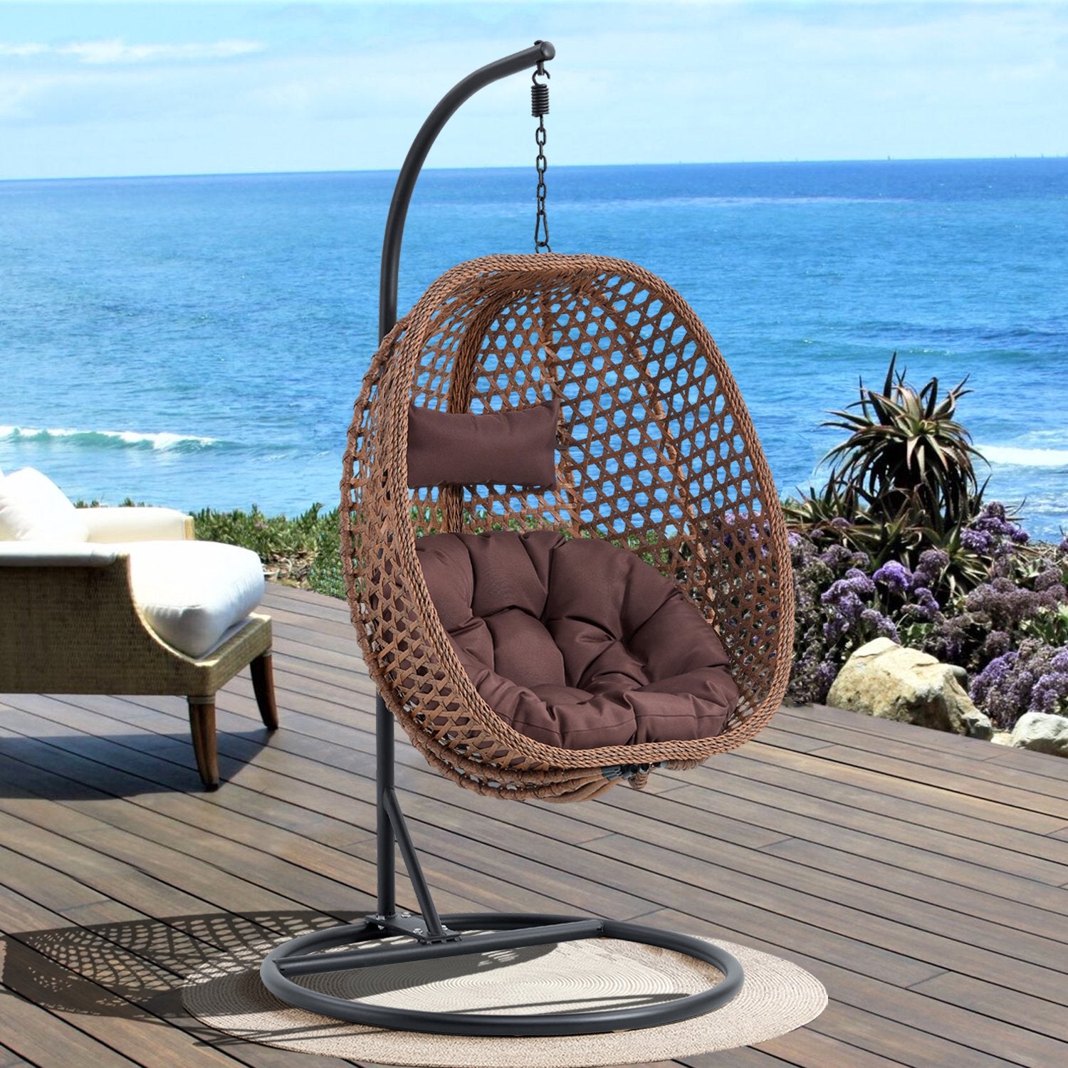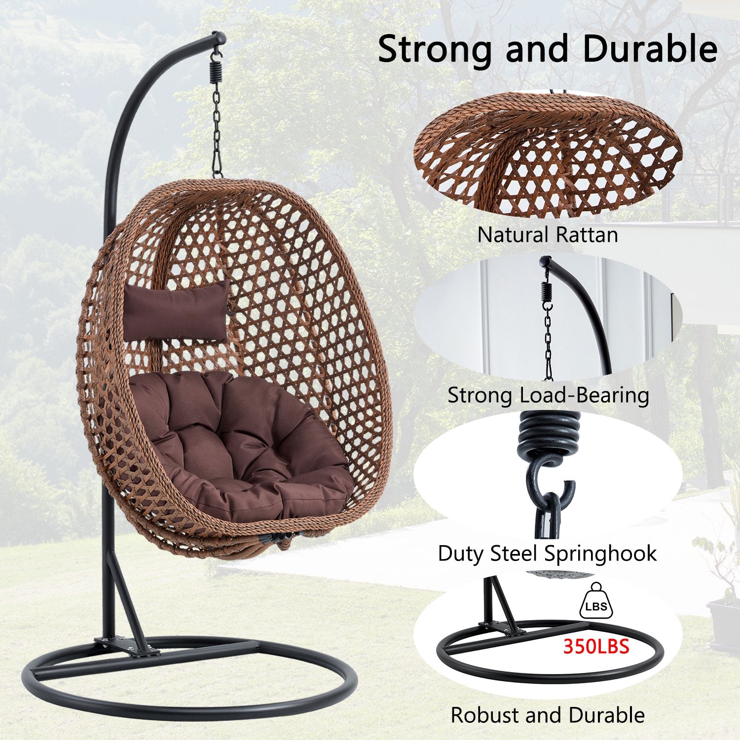 Hanging Egg Chair with Stand, Sudica Patio Soft Cushion Rattan Wicker Egg Swing Chair for Bedroom, Garden 350lbs Capacity, Dark Brown