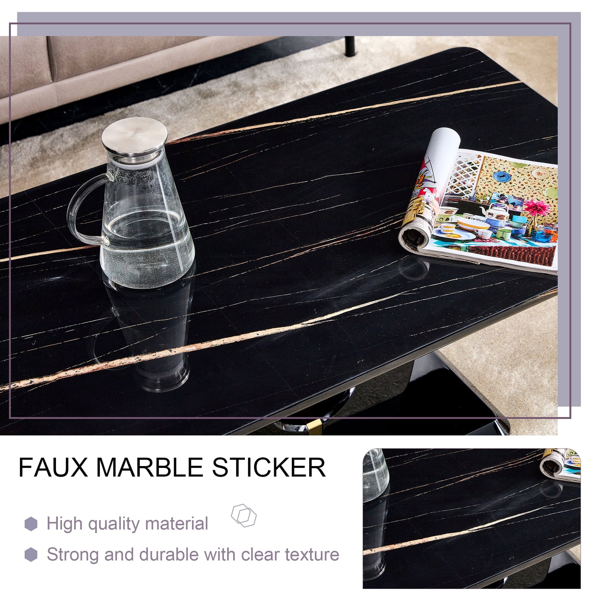 - ¡¾Marble Coffee Table¡¿: Our coffee table featuring a 1.41" thick faux marble tabletop. This stunning piece effortlessly adds a touch of opulence and sophistication to any living space. The smooth surface is not only visually appealing but also incredibly easy to maintain - simply wipe clean with a damp cloth for a pristine and elegant look.
