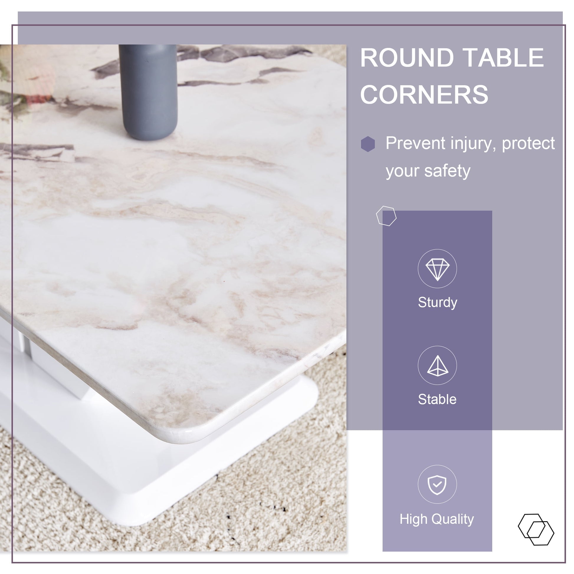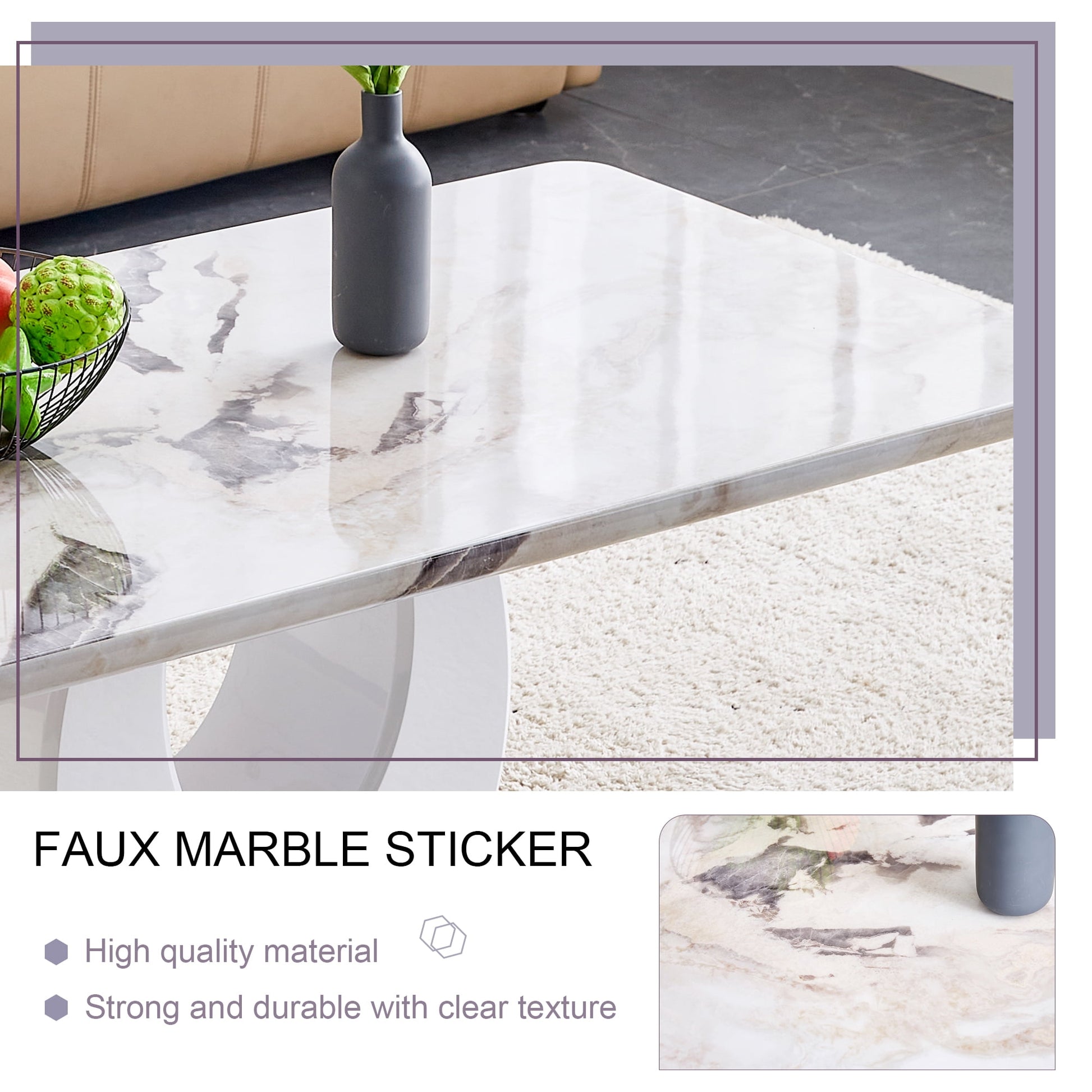 - ¡¾Marble Coffee Table¡¿: Our coffee table featuring a 1.41" thick faux marble tabletop. This stunning piece effortlessly adds a touch of opulence and sophistication to any living space. The smooth surface is not only visually appealing but also incredibly easy to maintain - simply wipe clean with a damp cloth for a pristine and elegant look.