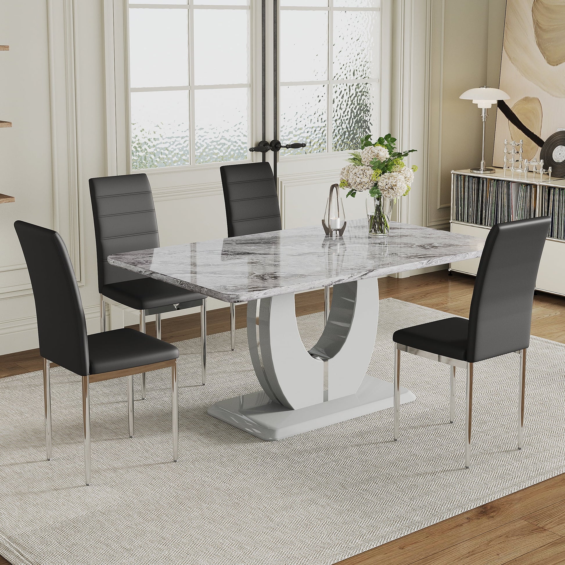 Marble Dining Table Set for 4, Sudica Kitchen Table and Chairs with Faux Marble Table Top and Black PU Leather Dining Room Chairs