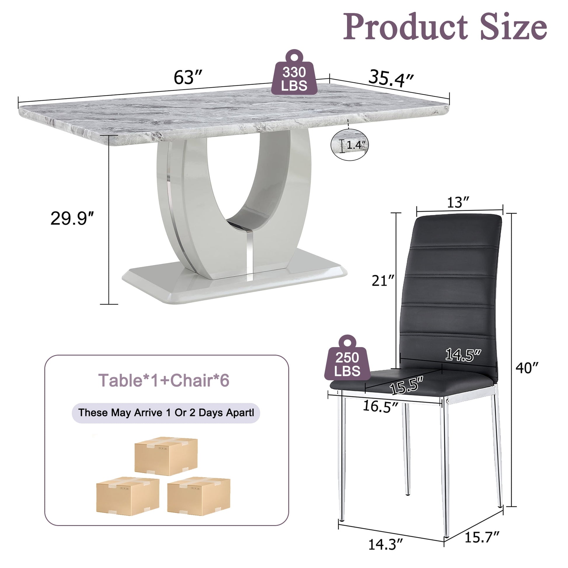 - ¡¾Spacious Faux Marble Dining Set¡¿Perfect for hosting family and friends, this dining table set comfortably accommodates 6 people. Whether it's breakfast, lunch, dinner, or even afternoon tea, this versatile set can be used as a display table, large coffee table, presentation table, and more. It's an excellent choice for family gatherings and parties.