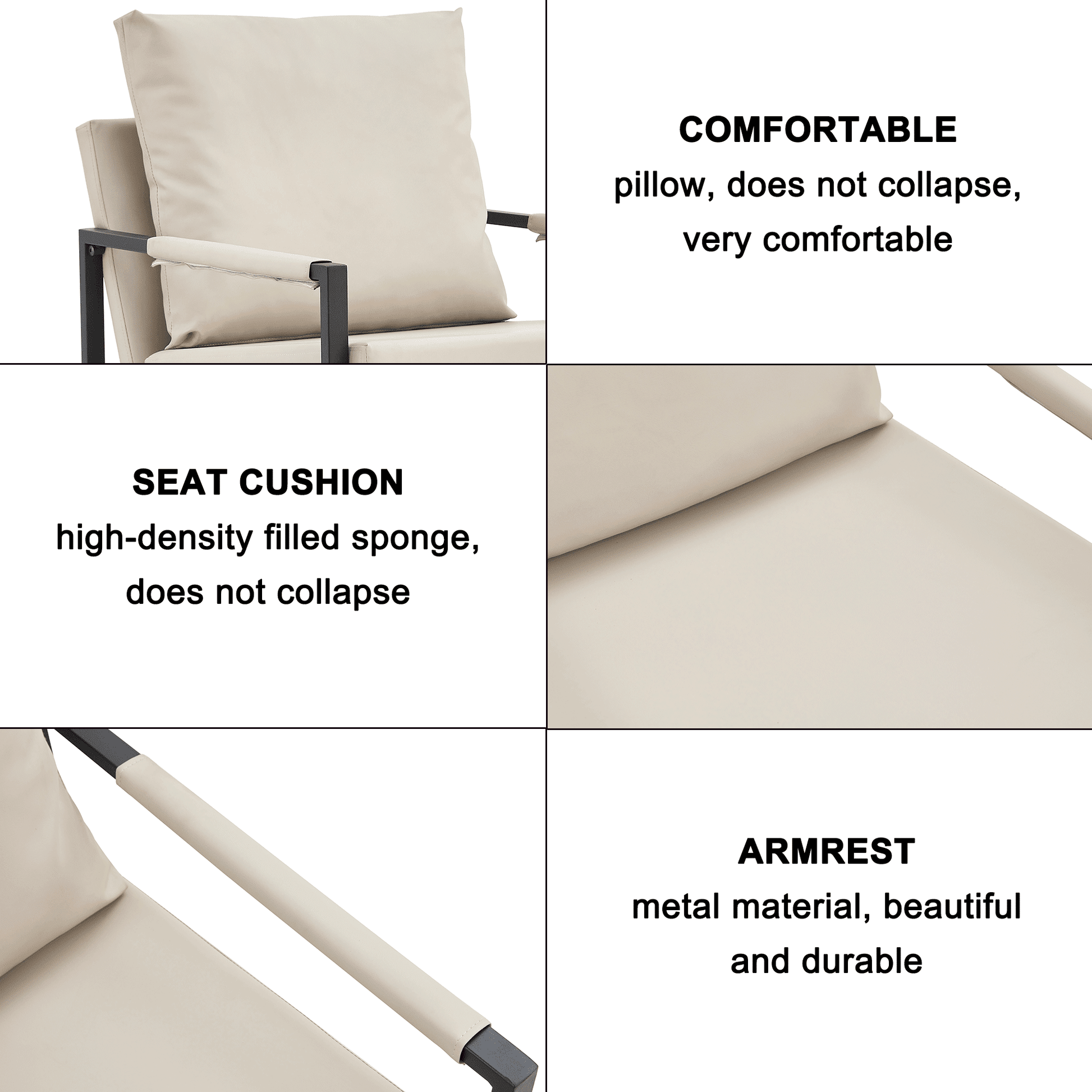 - Sturdy & Durable--Crafted with wear-resistant faux leather and a high-quality metal frame, it can withstand everyday use. With a weight capacity of 300 lbs, this living room chair strength and reliability.