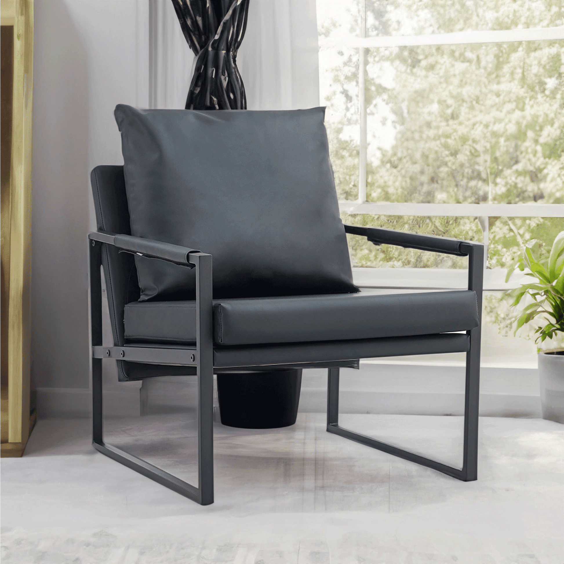 - Sturdy & Durable--Crafted with wear-resistant faux leather and a high-quality metal frame, it can withstand everyday use. With a weight capacity of 300 lbs, this living room chair strength and reliability.