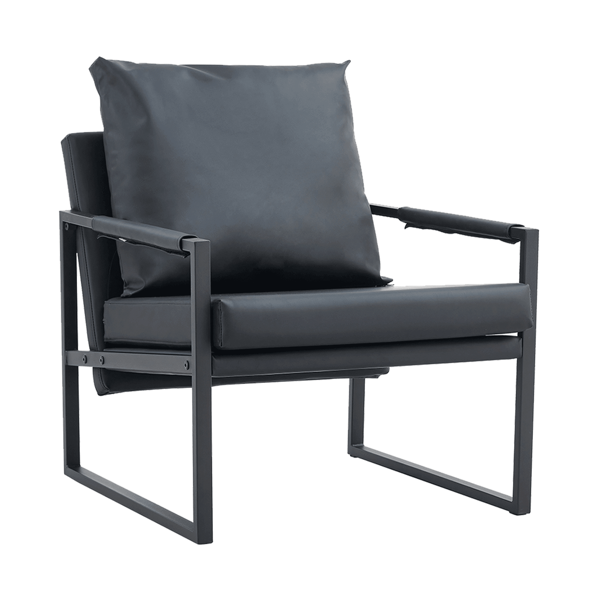 Mid-Century Accent Chair Metal Frame Faux Leather Reading Arm Chair for Living Room and Bedroom, Black